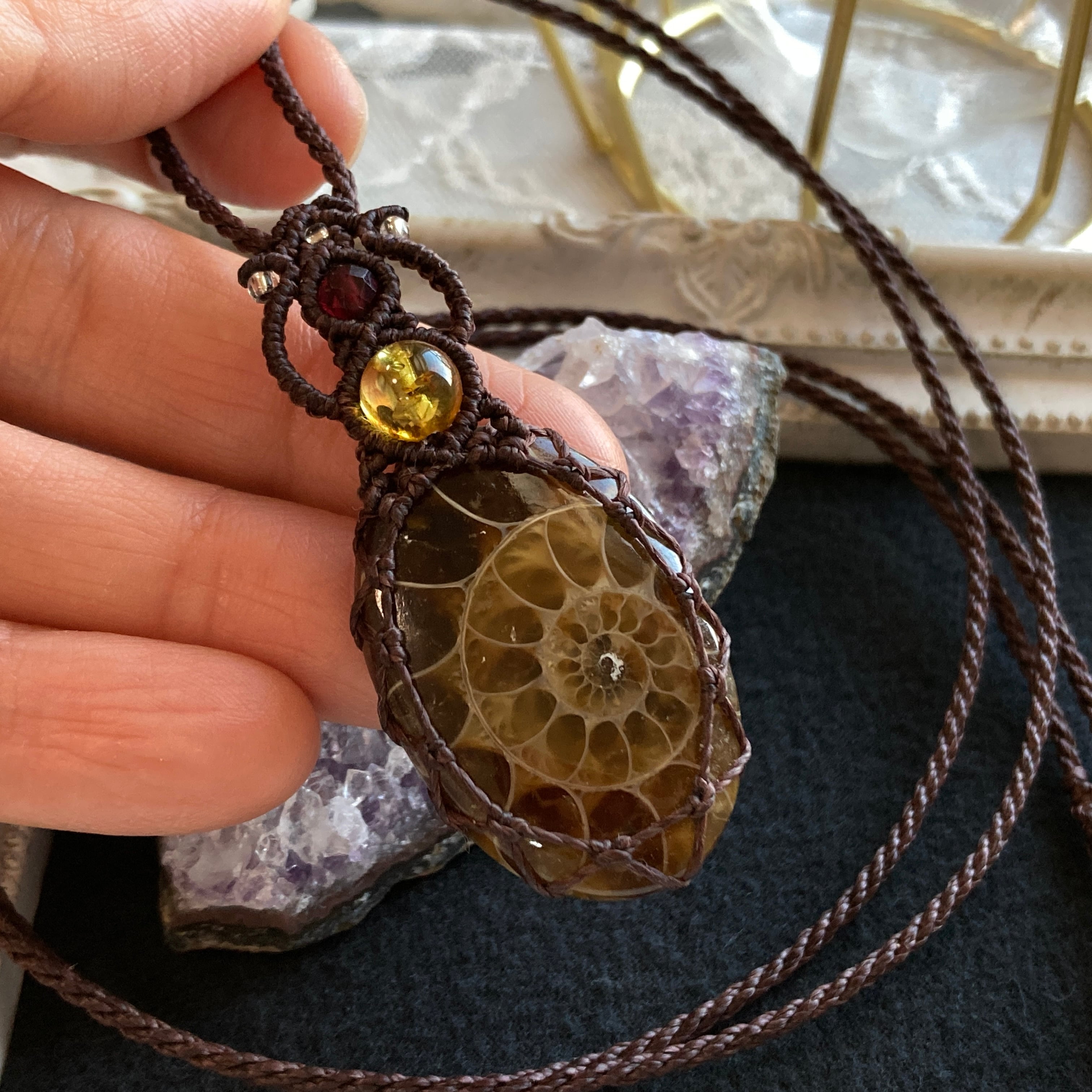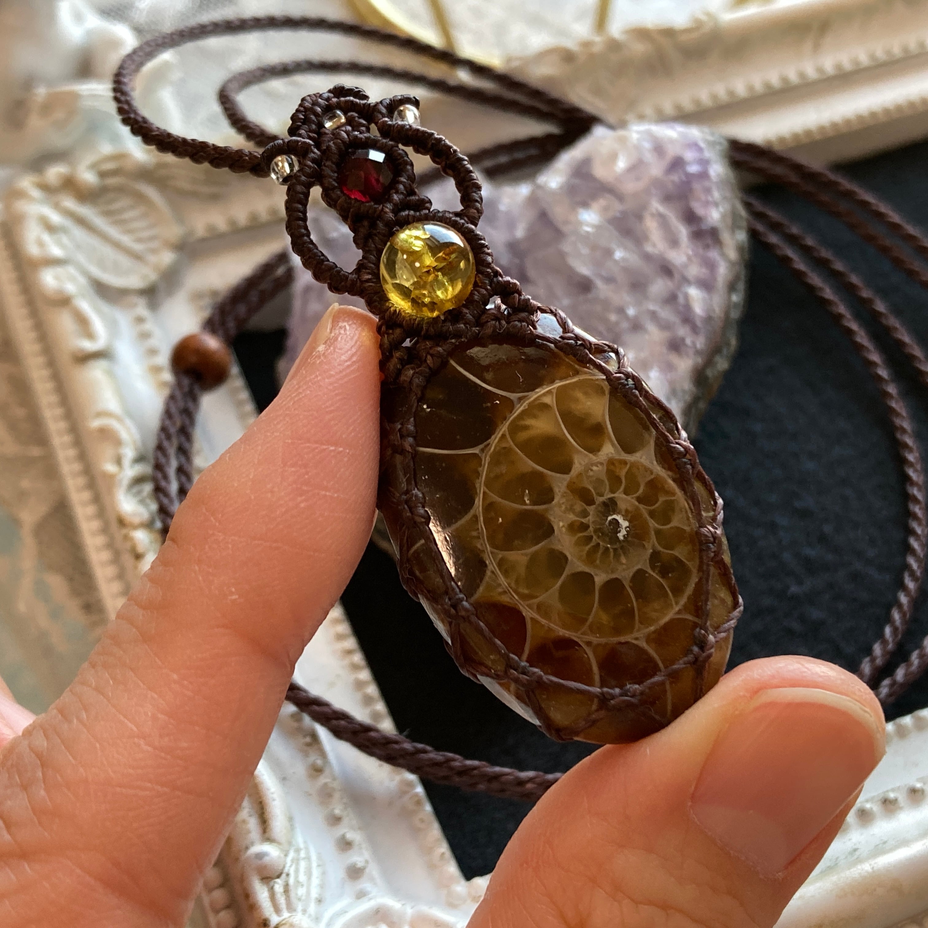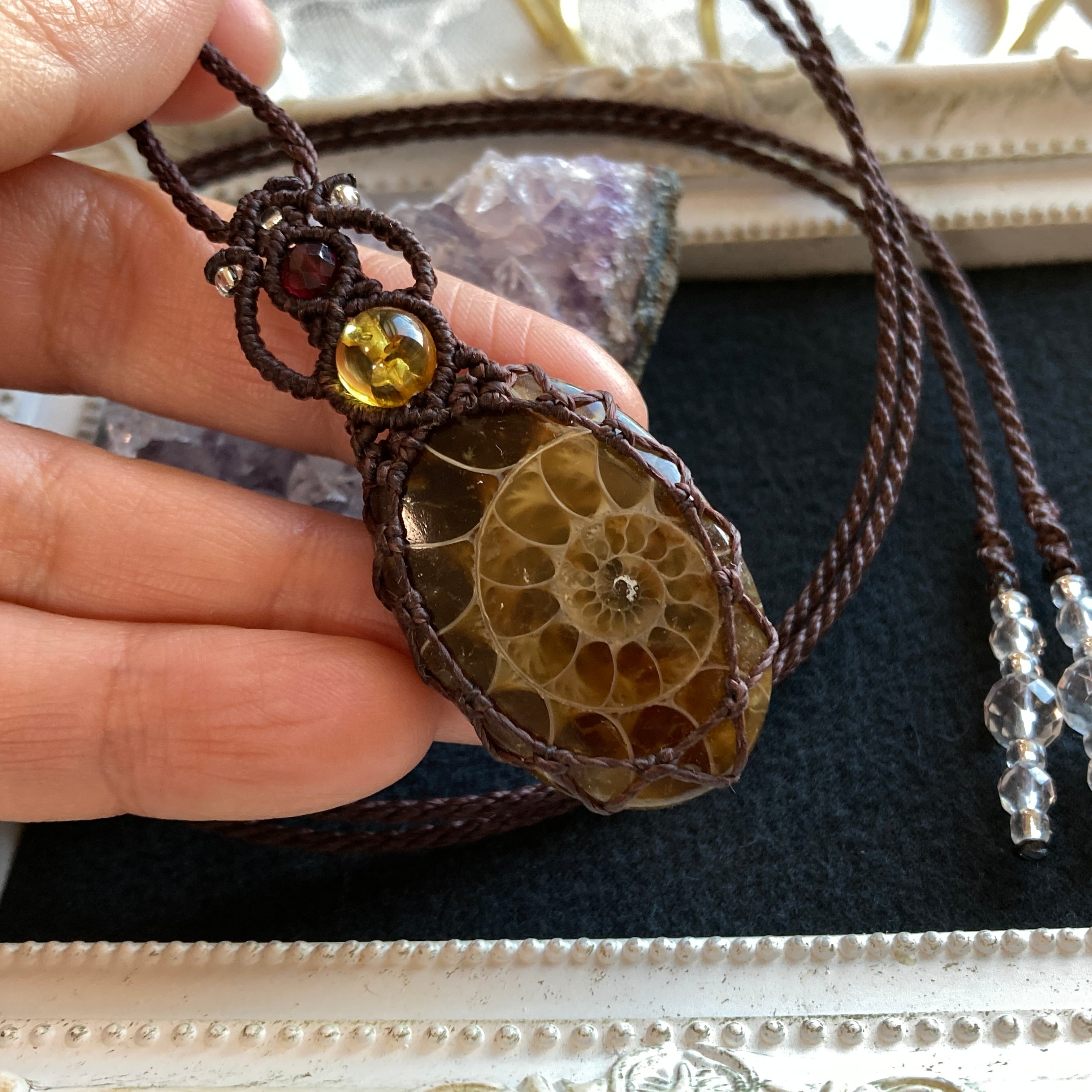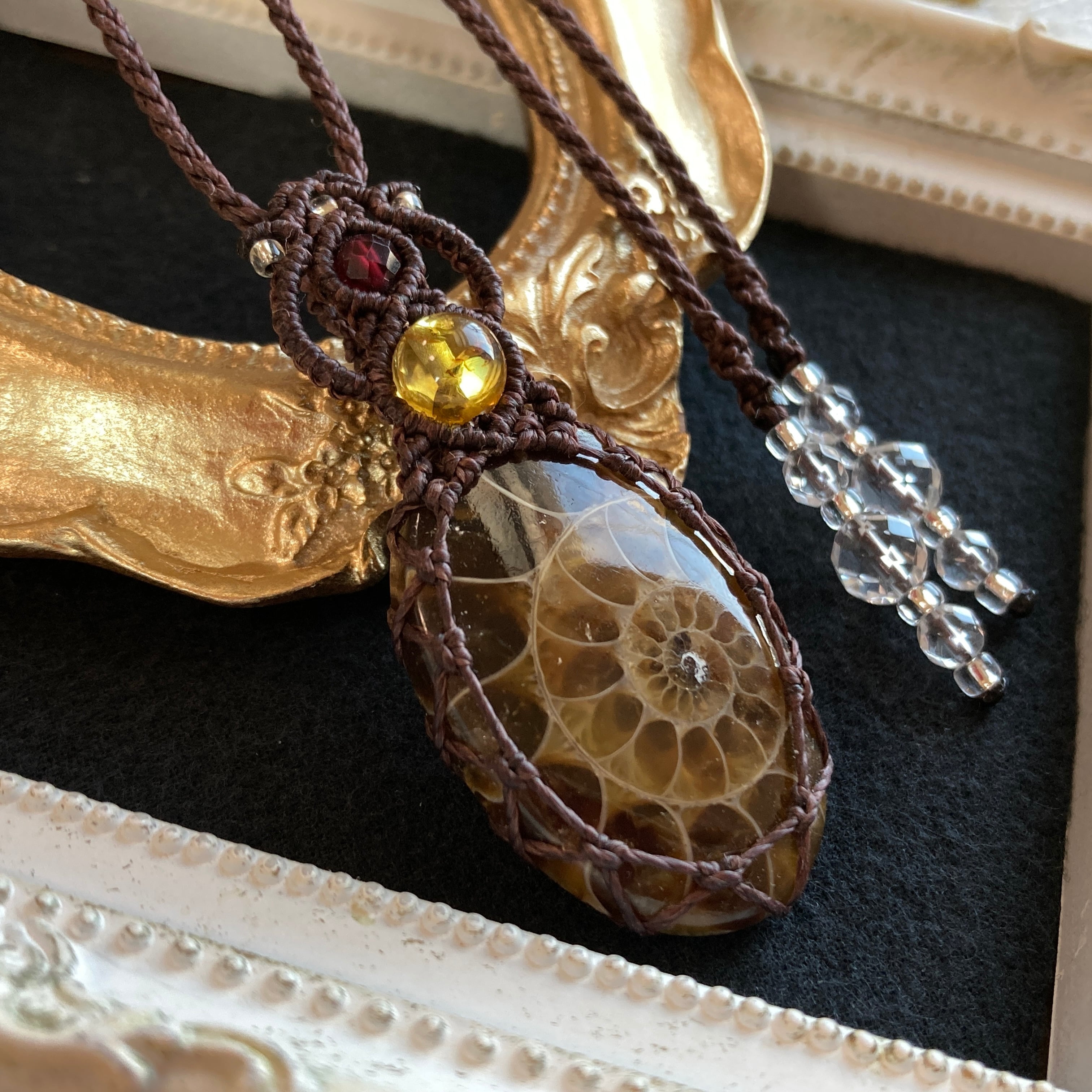 【アンモナイトマクラメネックレス】