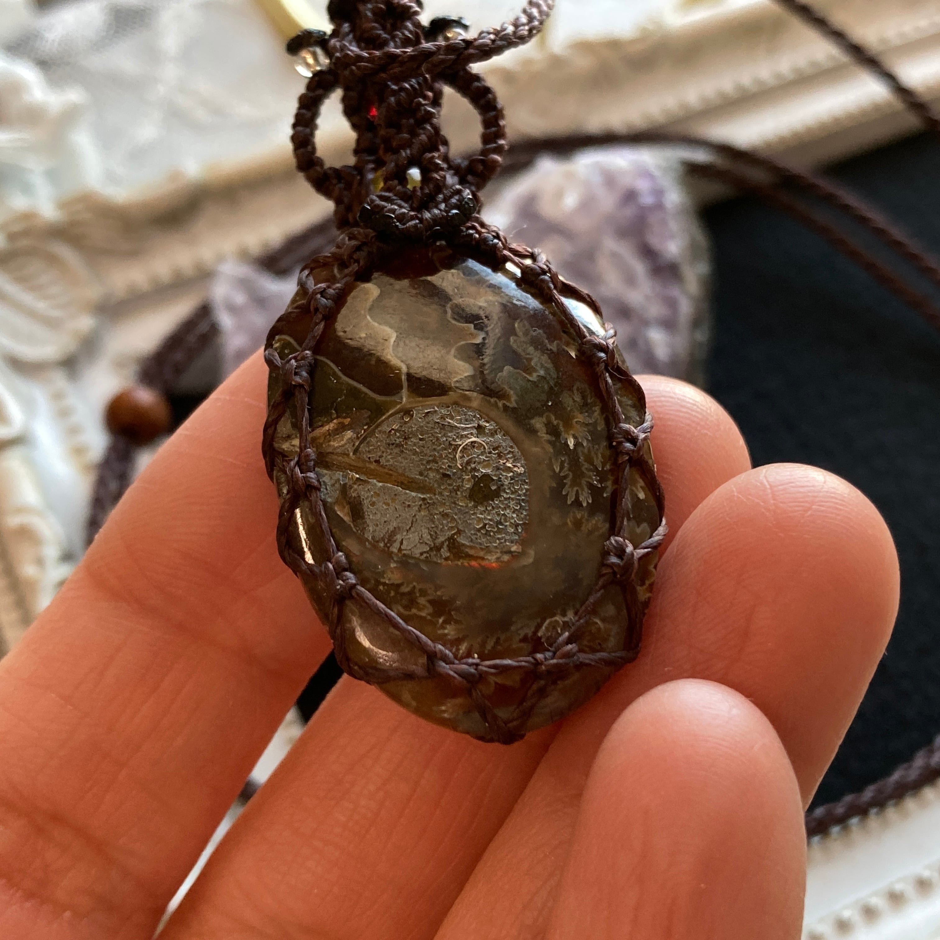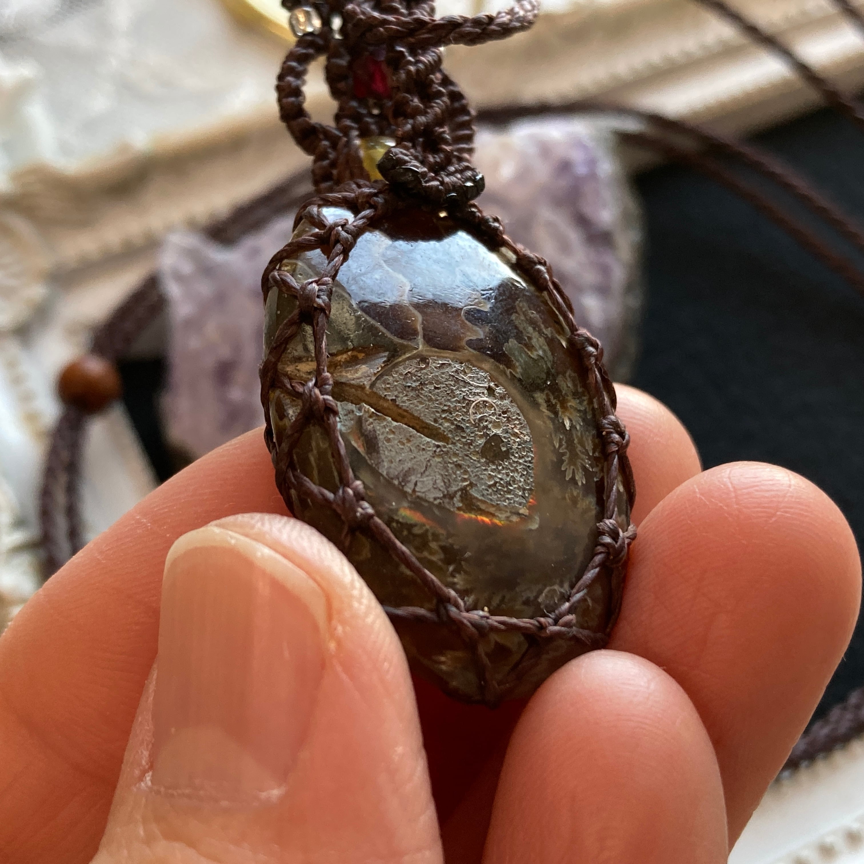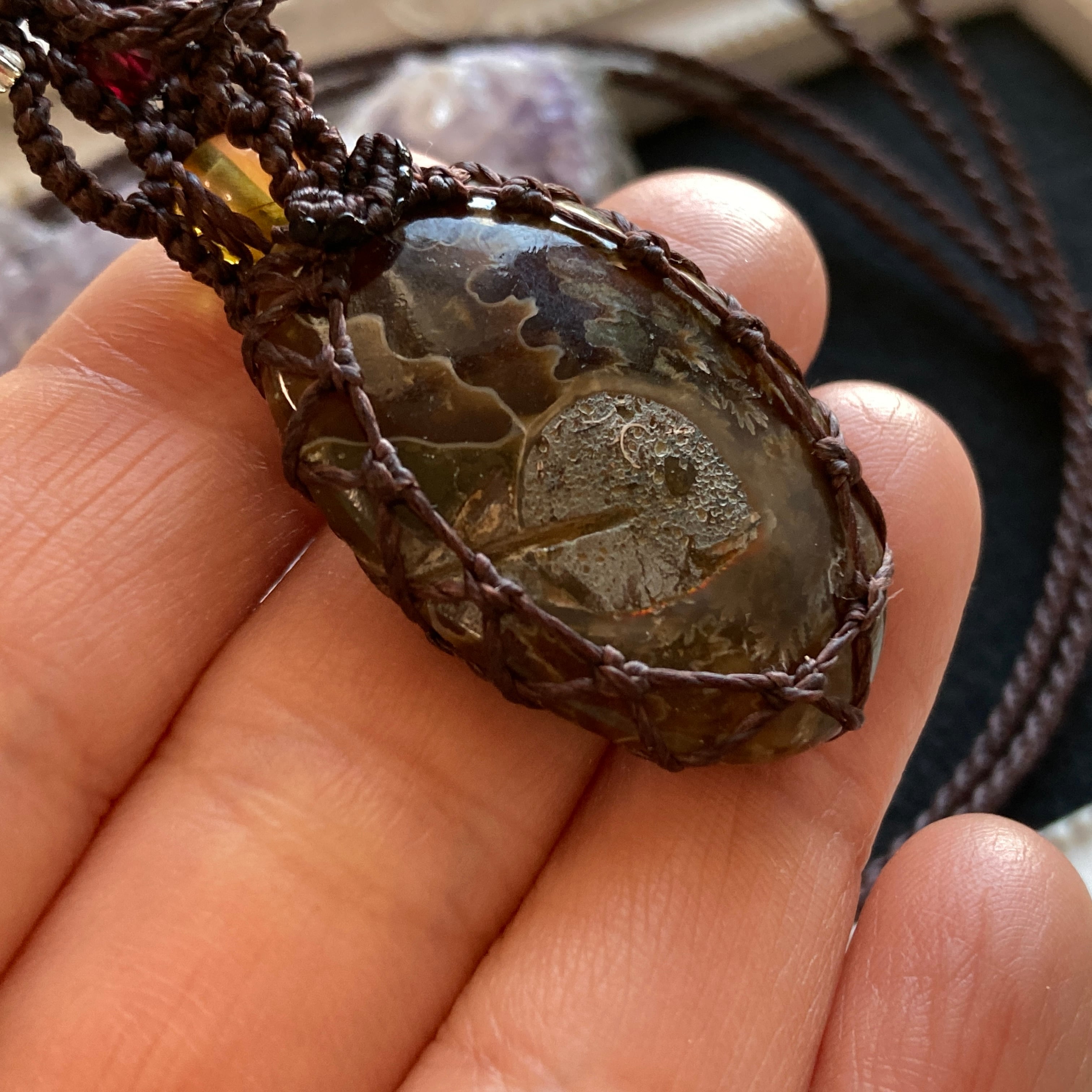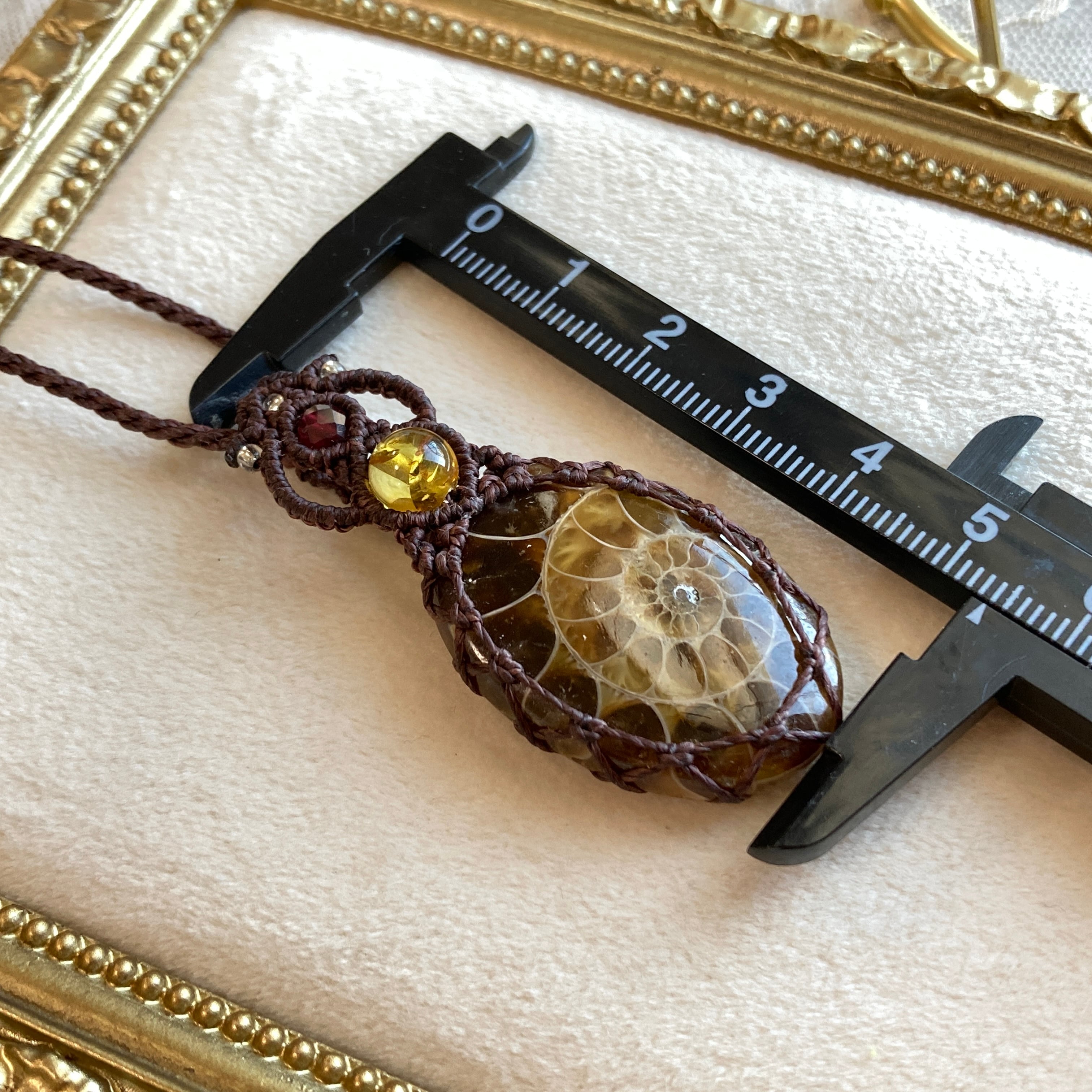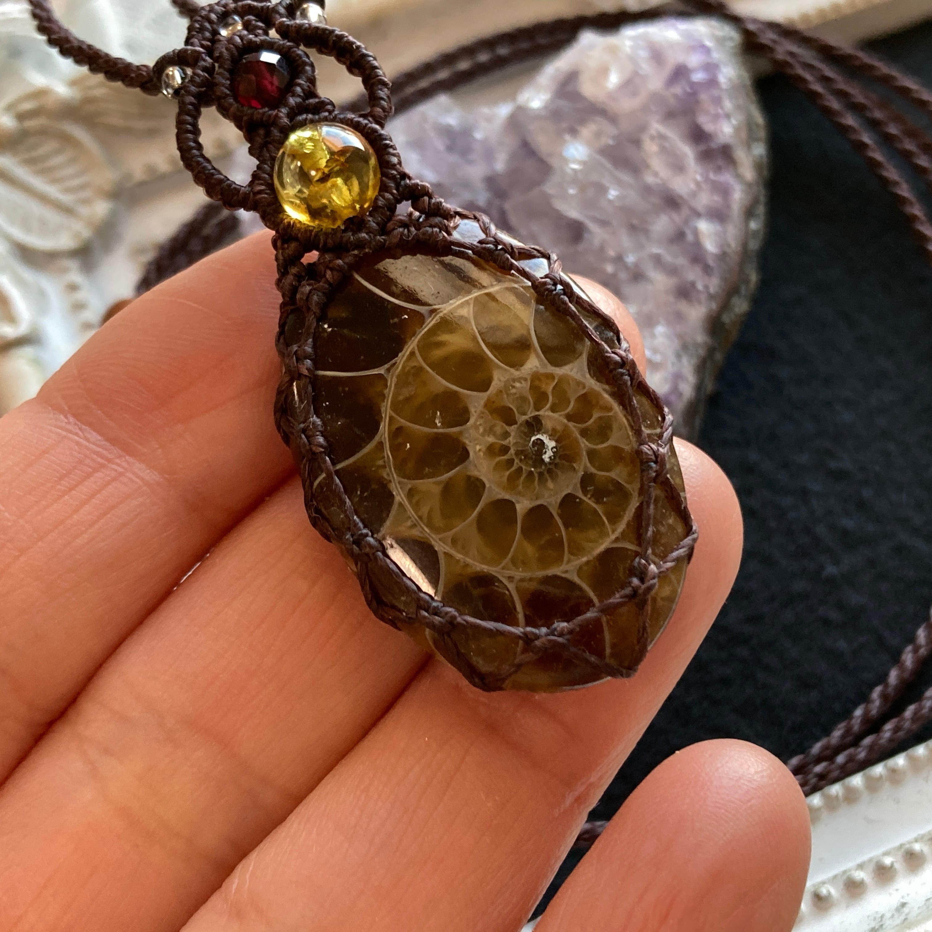 【アンモナイトマクラメネックレス】
