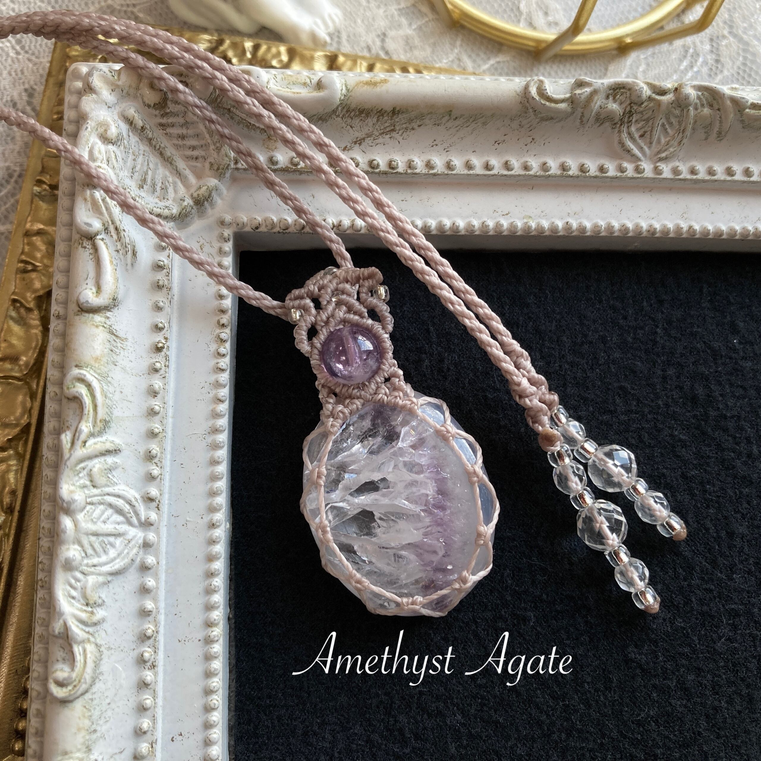 アメジスト・アゲート(小さめサイズ) マクラメネックレス