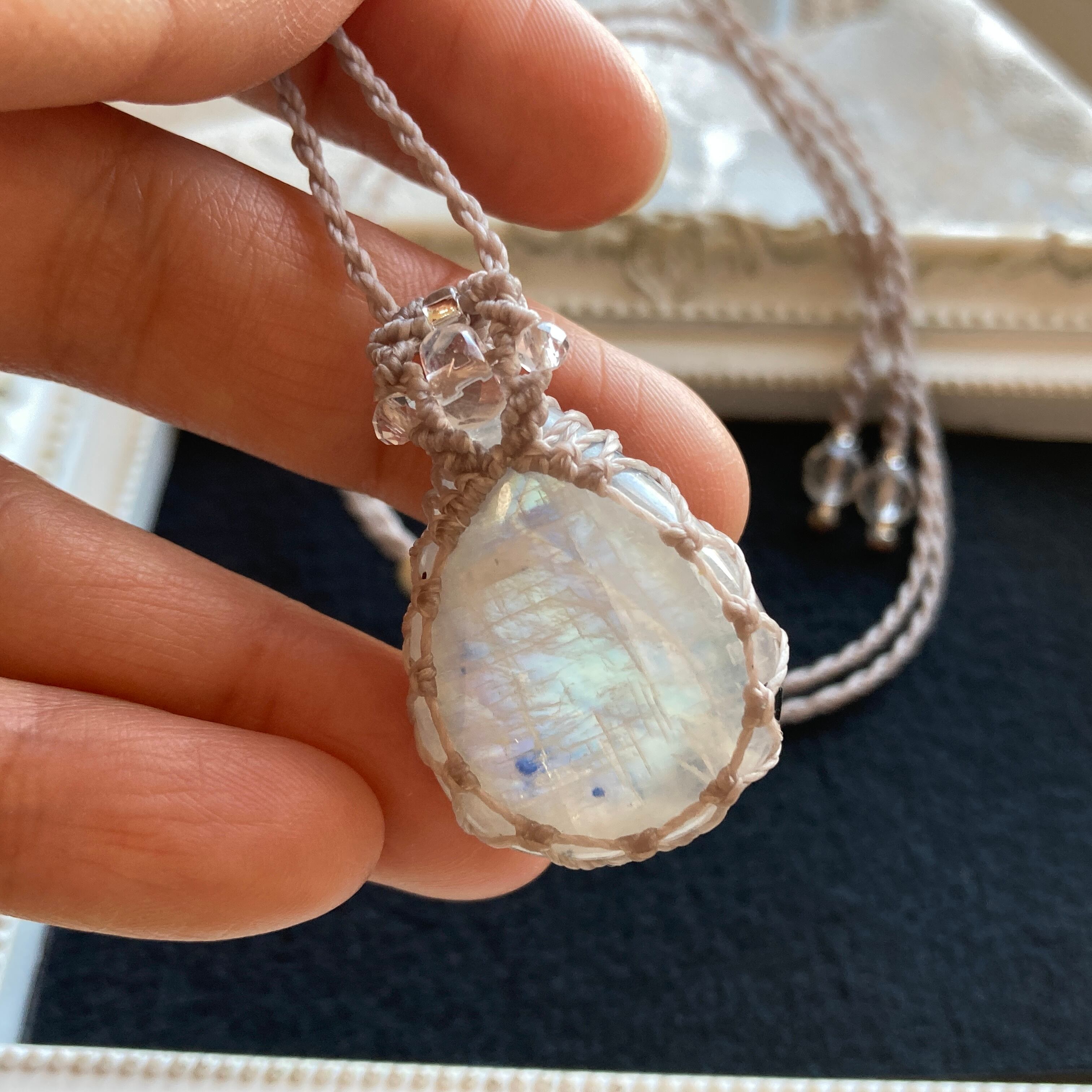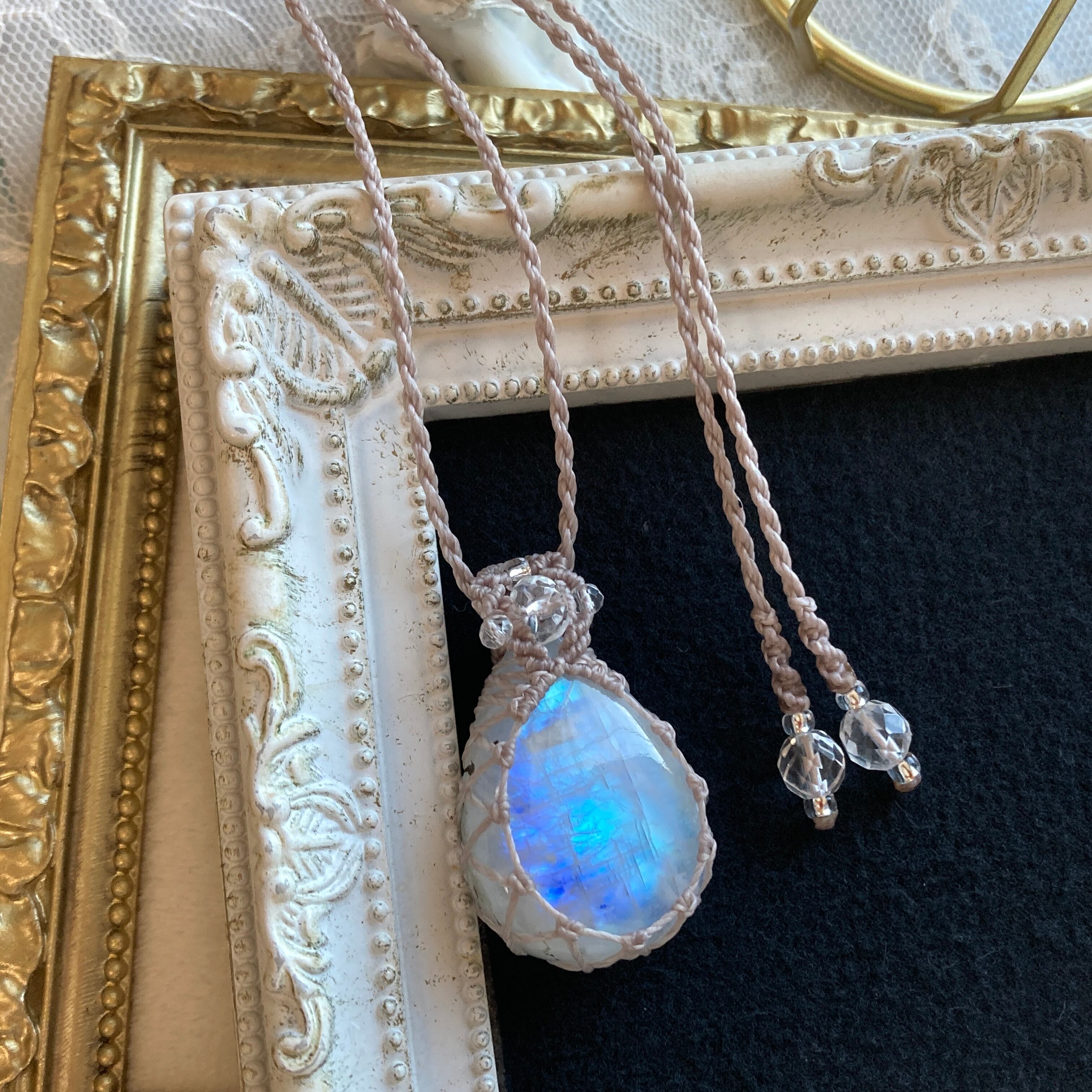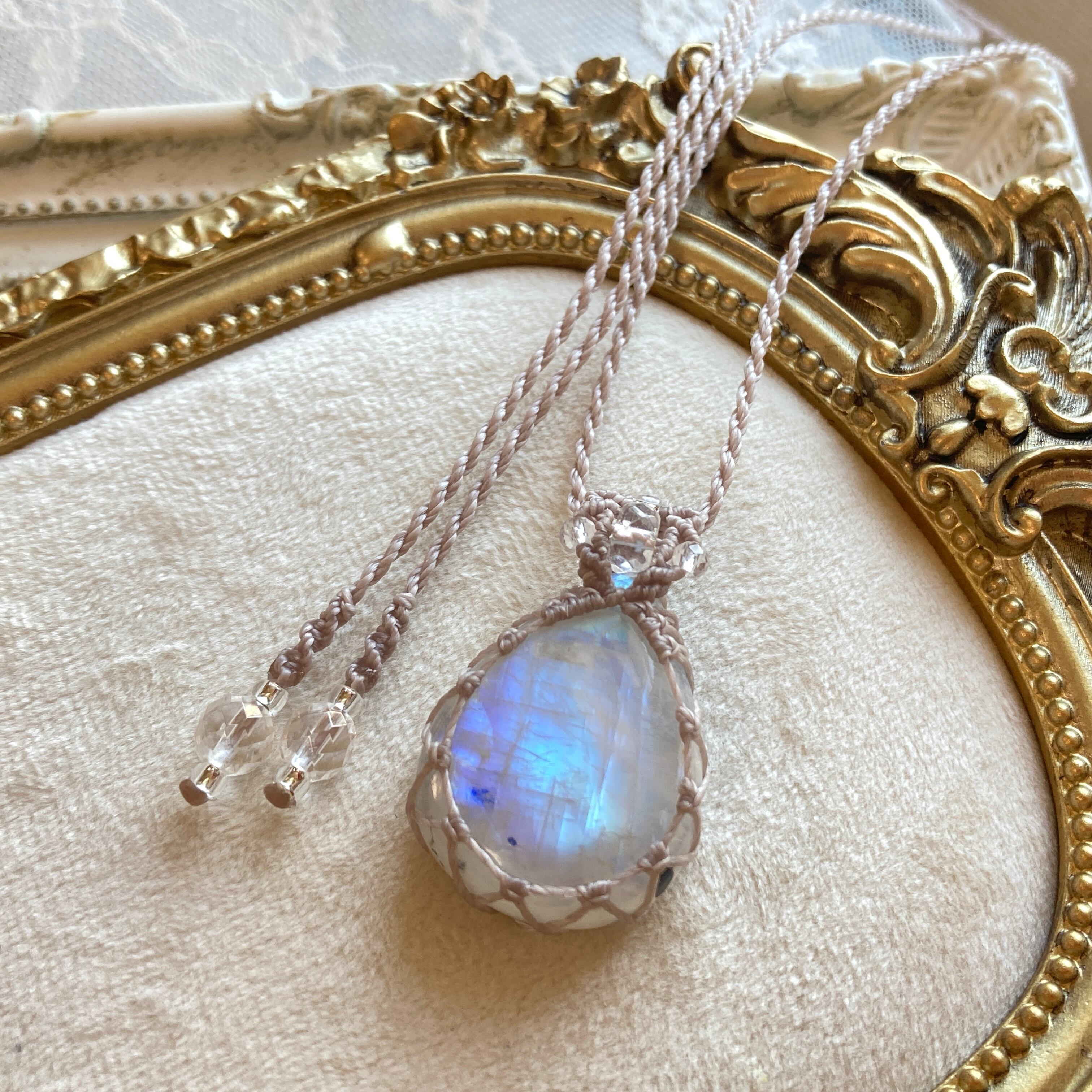 【Masquerade *Petit*】レインボームーンストーン マクラメ編みネックレス