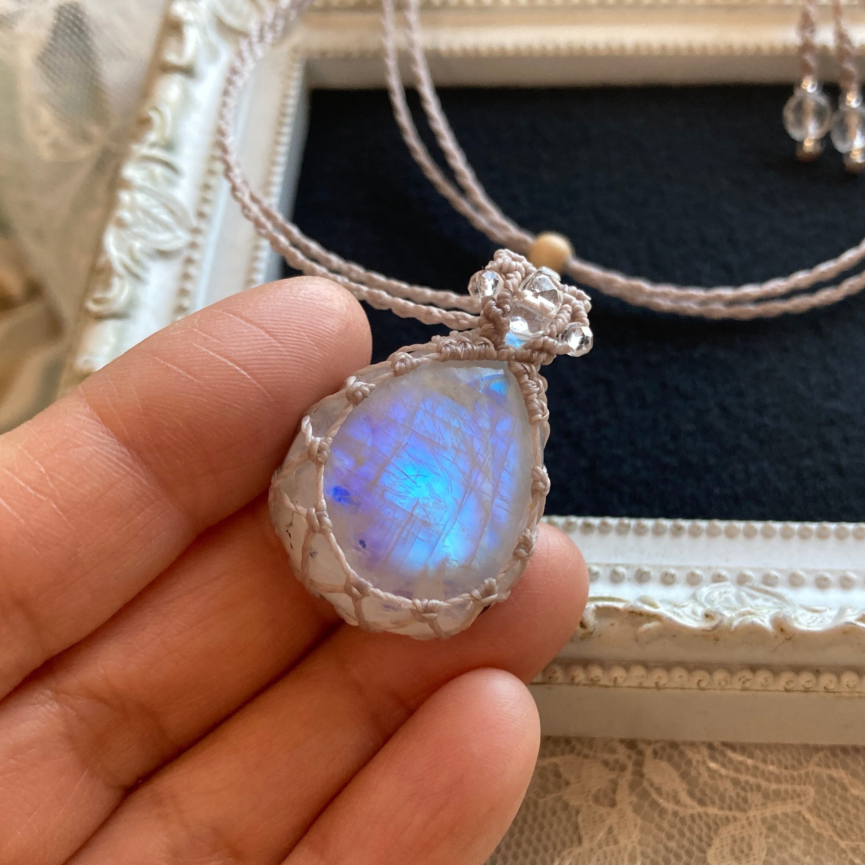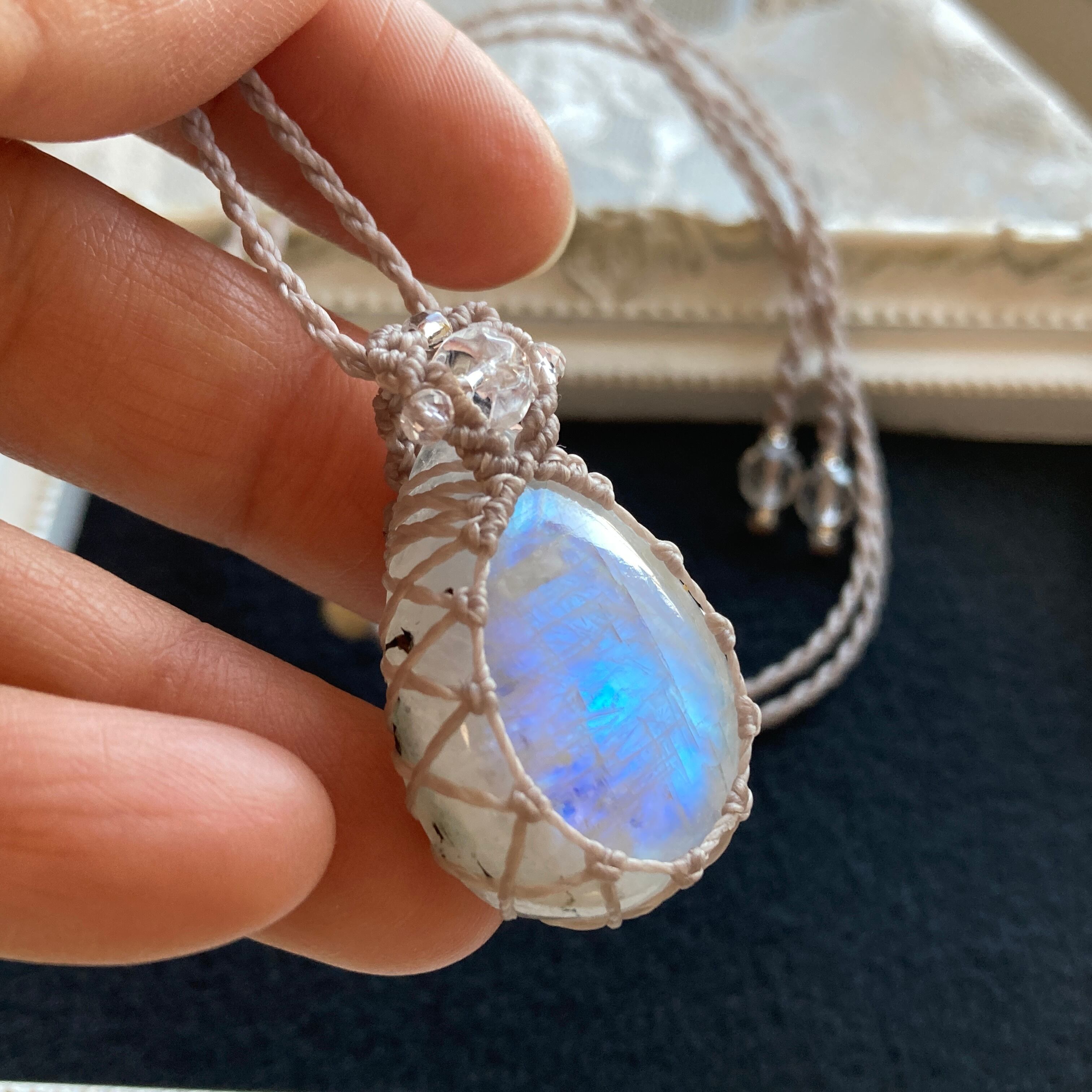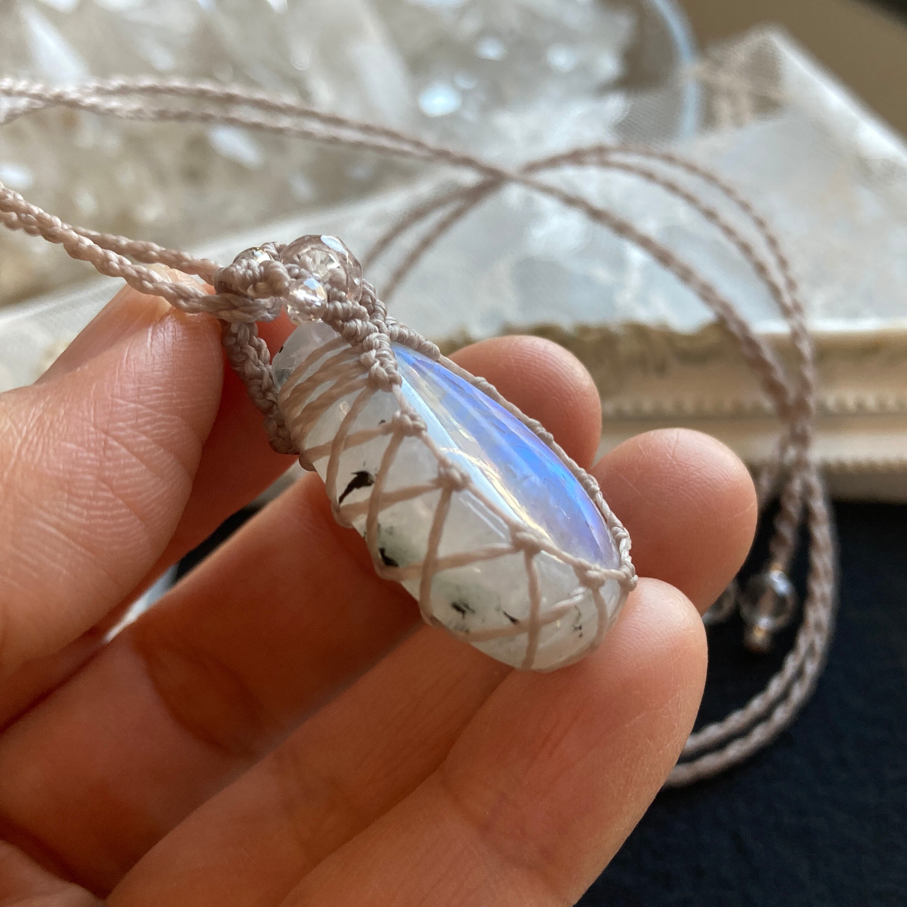 【Masquerade *Petit*】レインボームーンストーン マクラメ編みネックレス