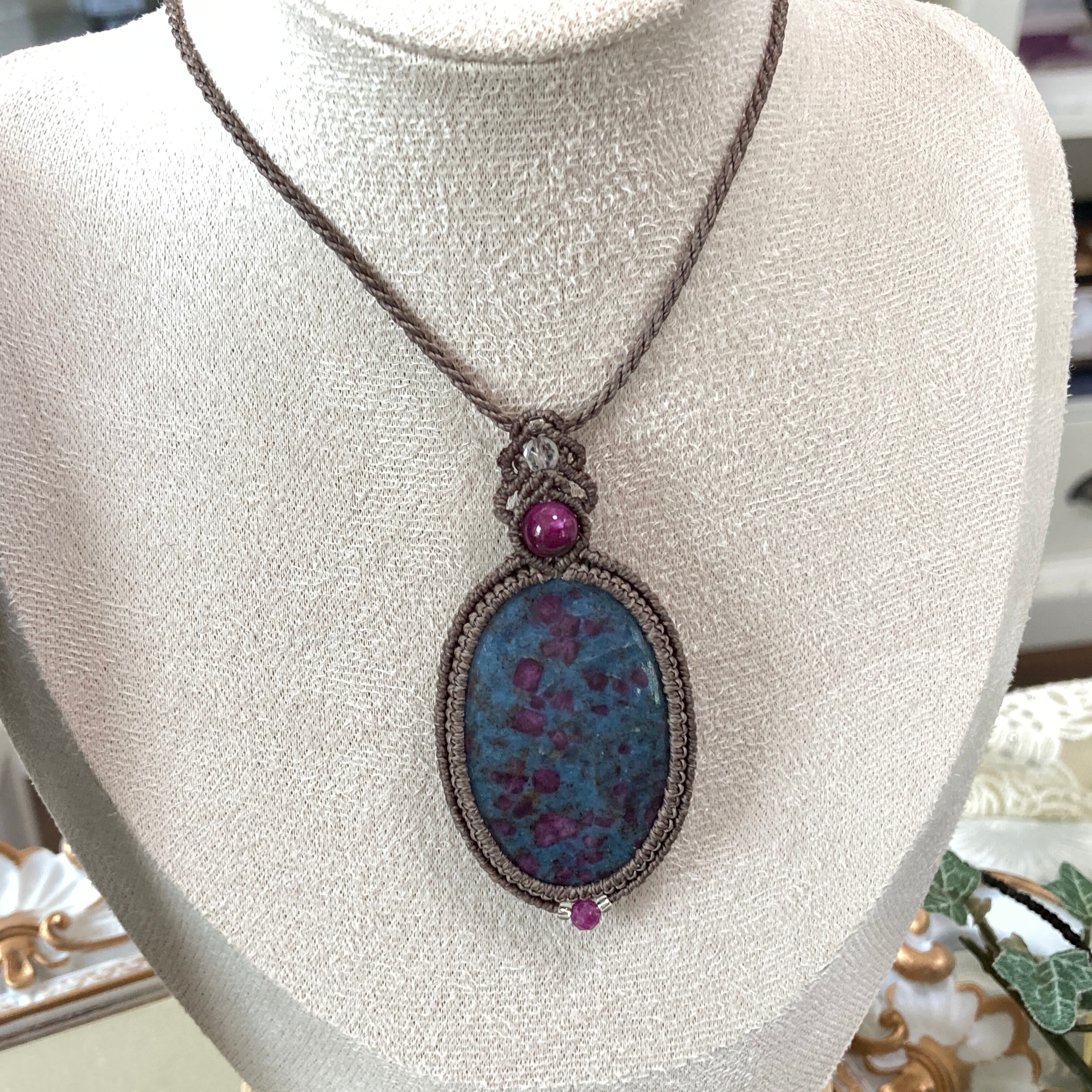 【ルビーインカイヤナイト マクラメネックレス】