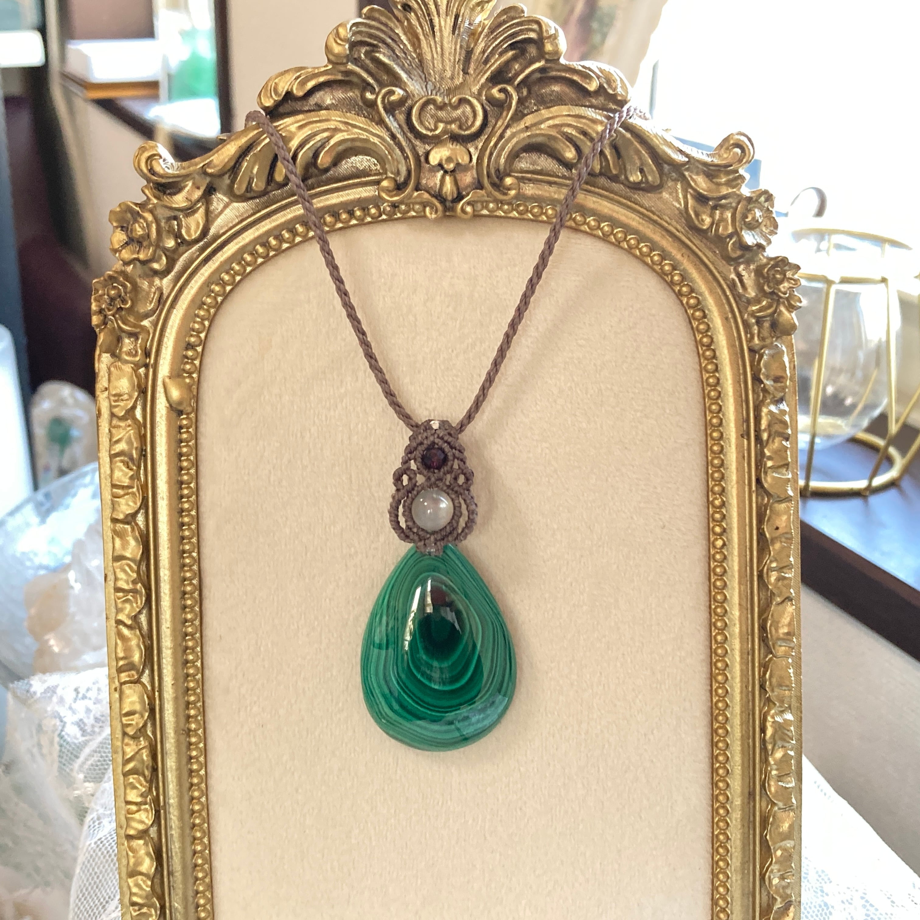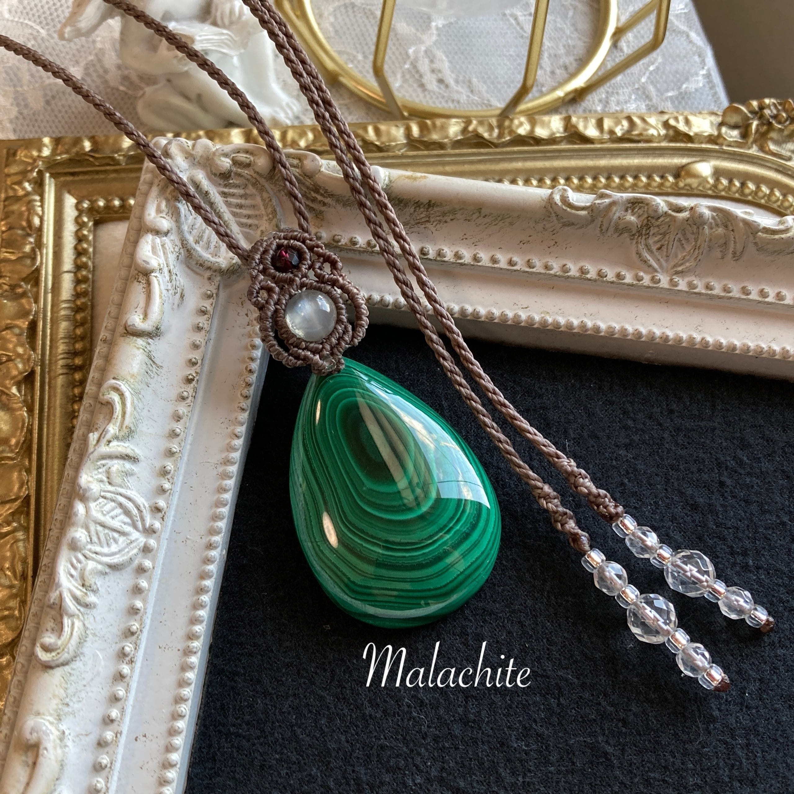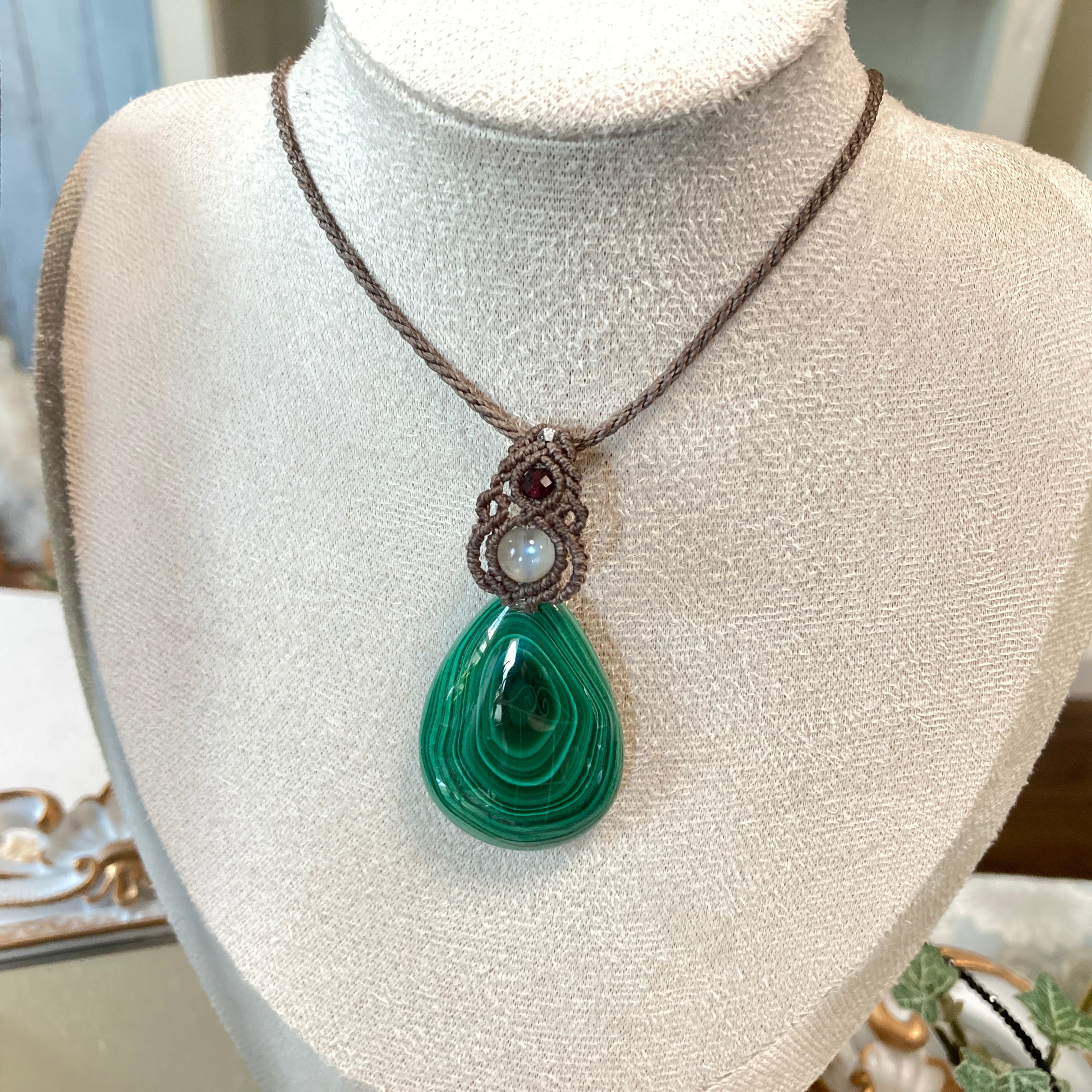 マラカイト マクラメネックレス・マクラメ編みペンダントネックレス