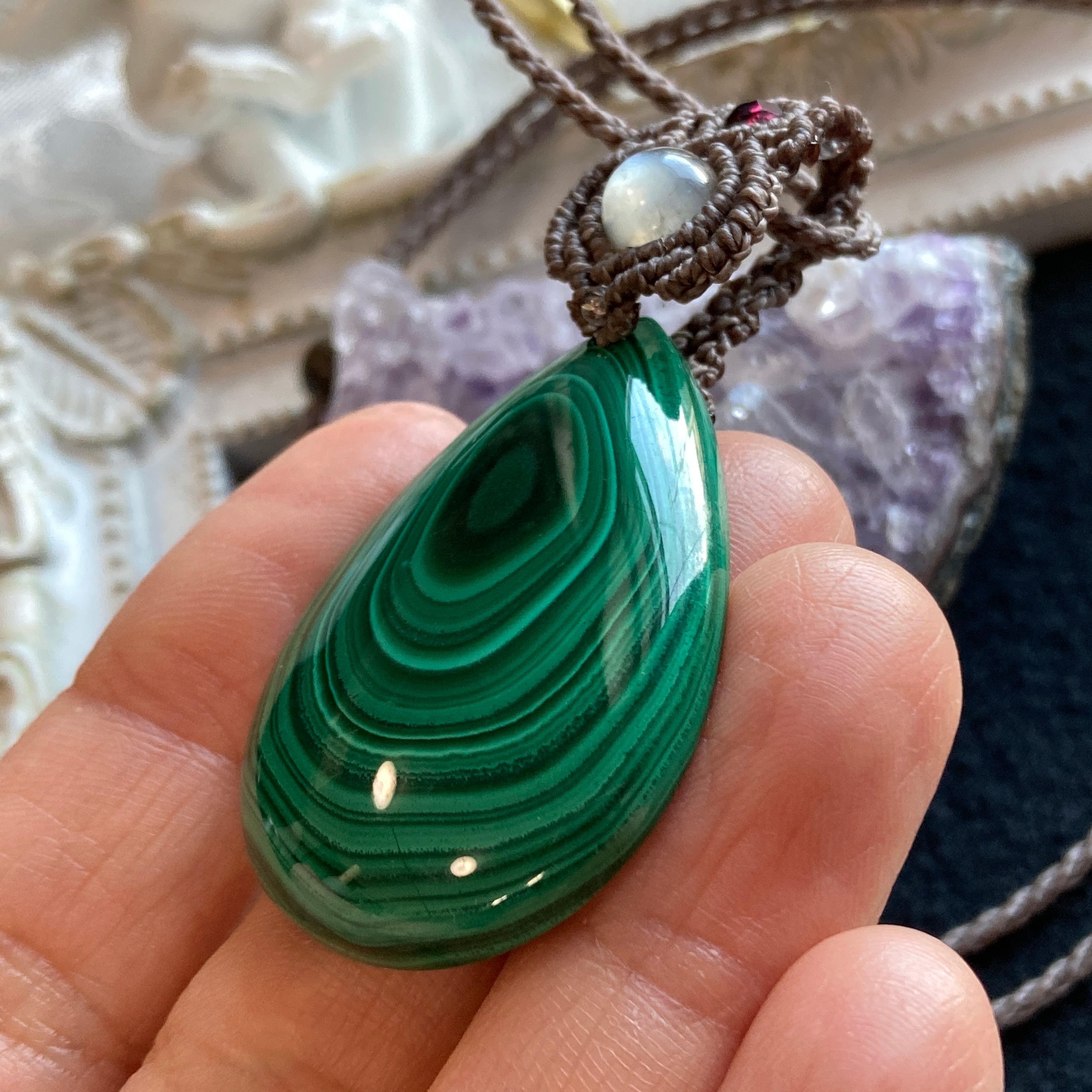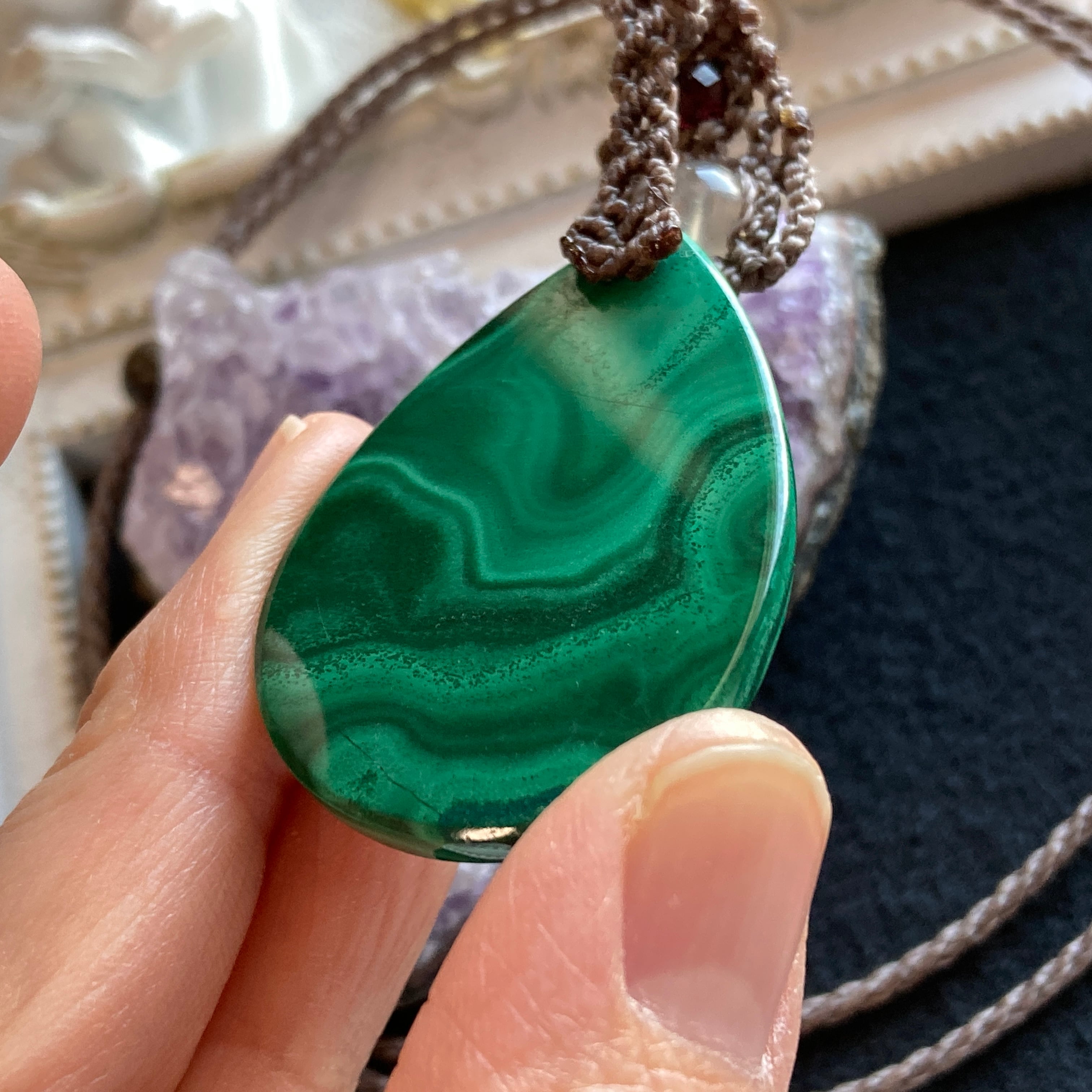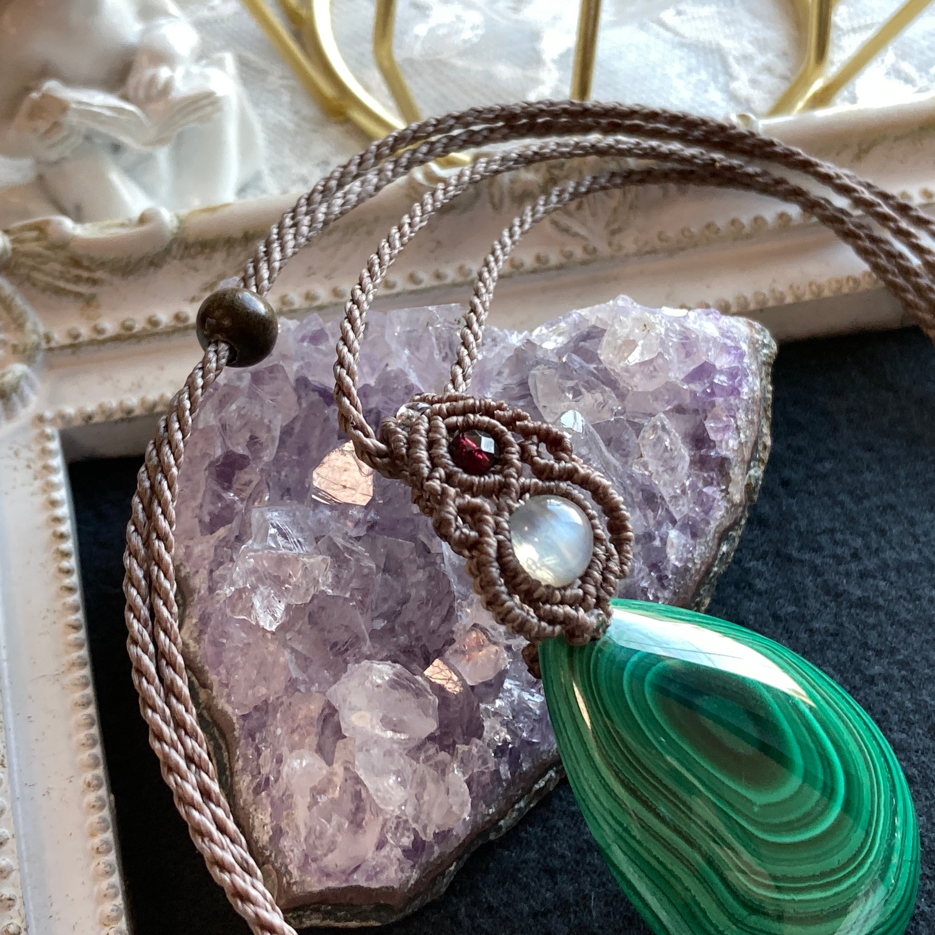 マラカイト マクラメネックレス・マクラメ編みペンダントネックレス