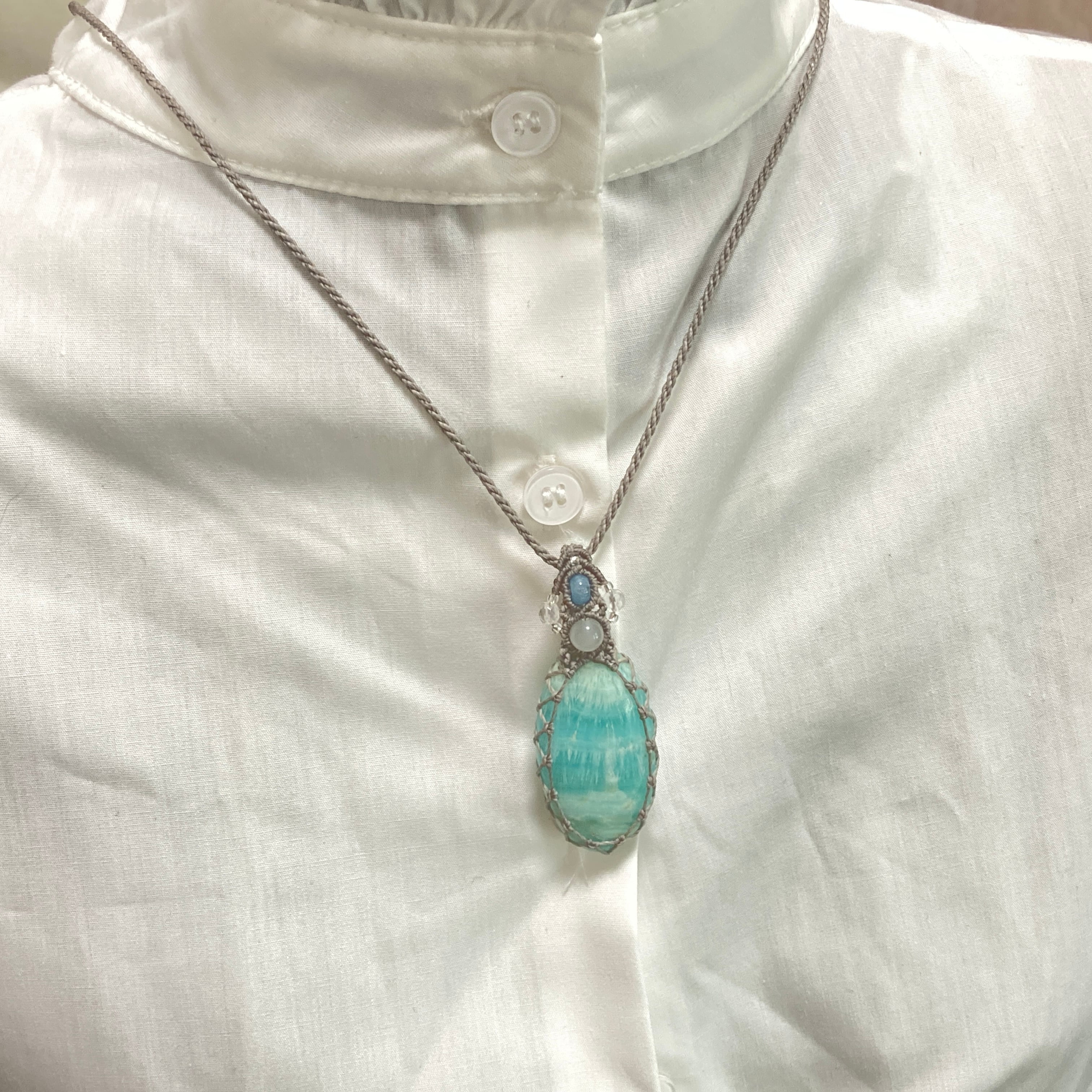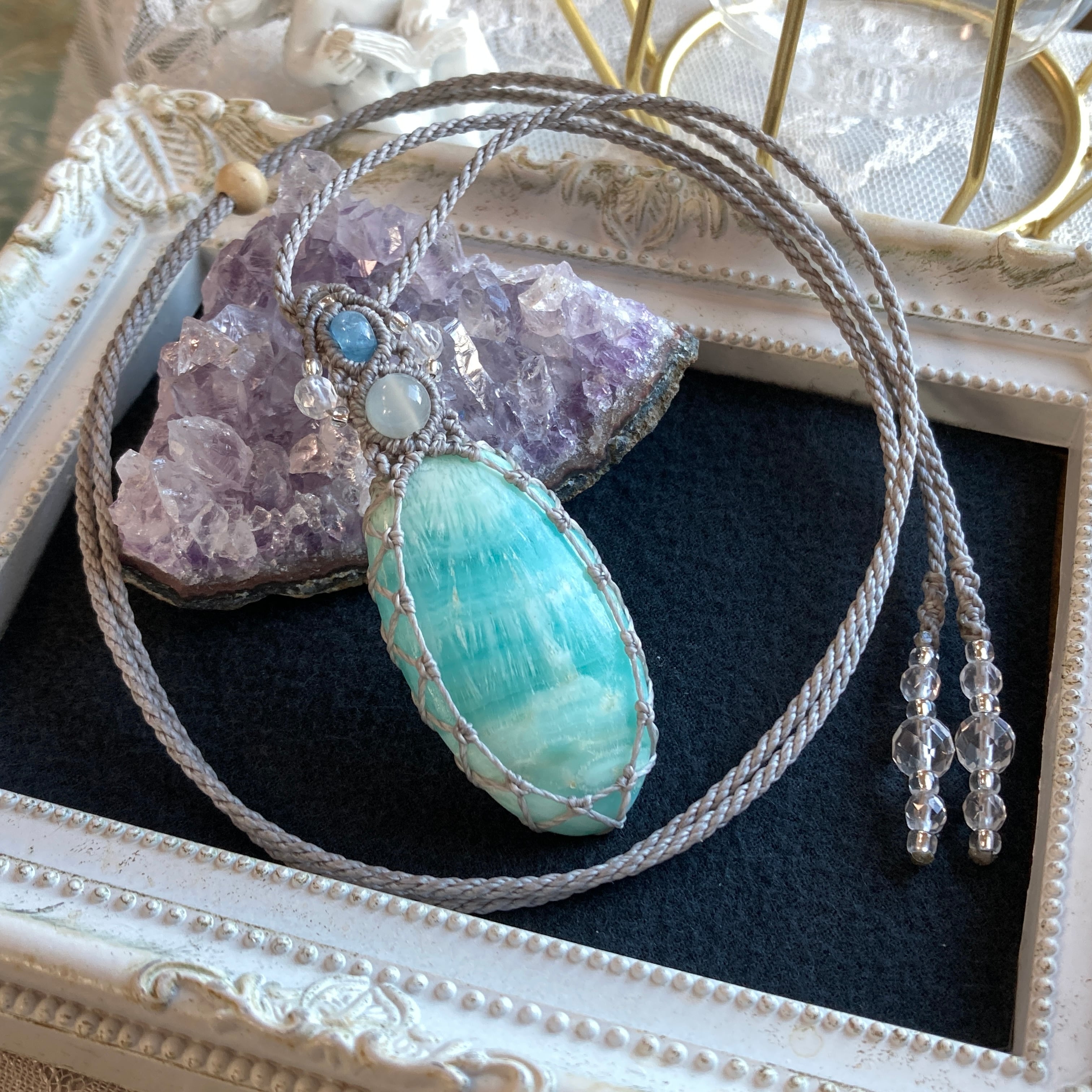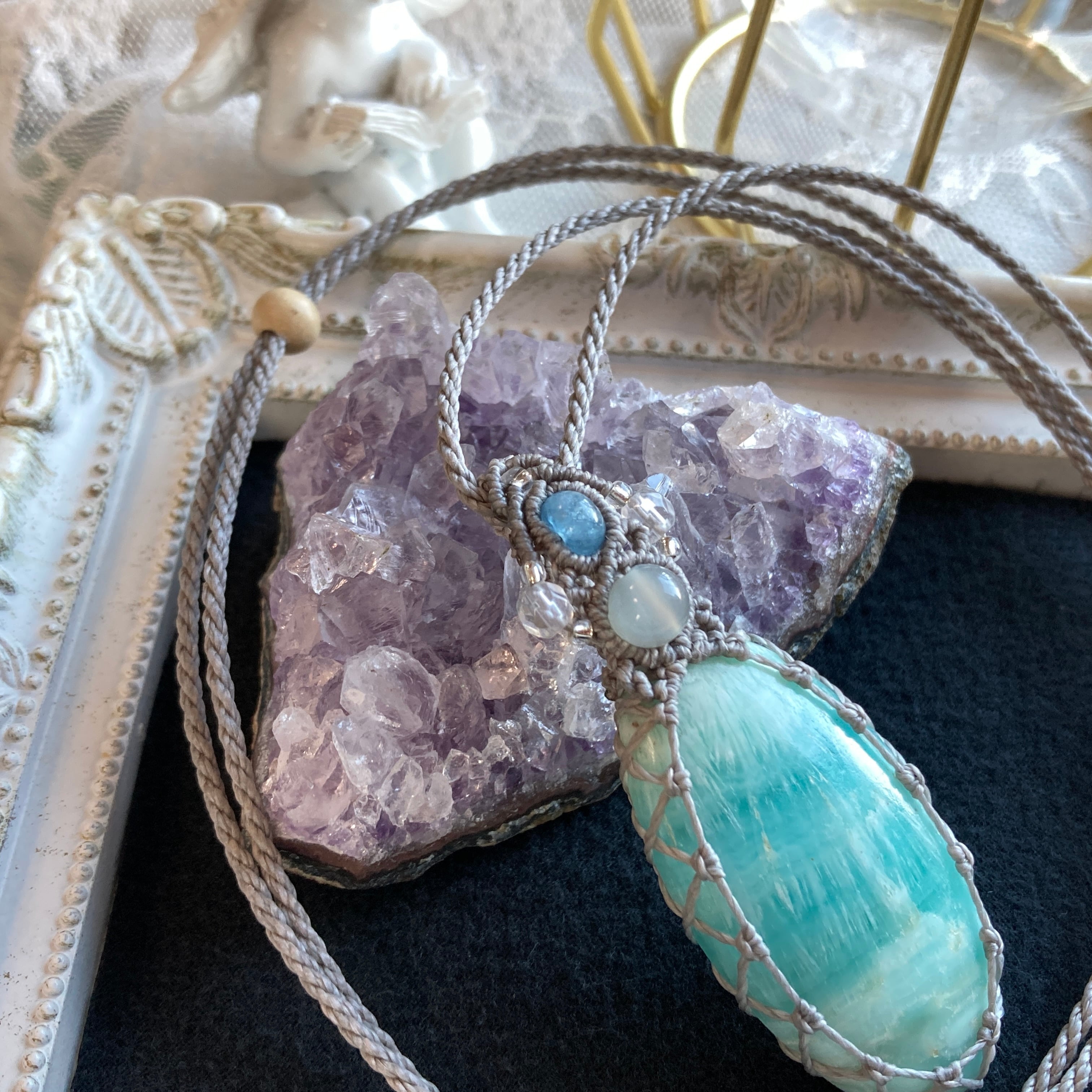 ブルーアラゴナイト マクラメネックレス・マクラメ編みペンダントネックレス