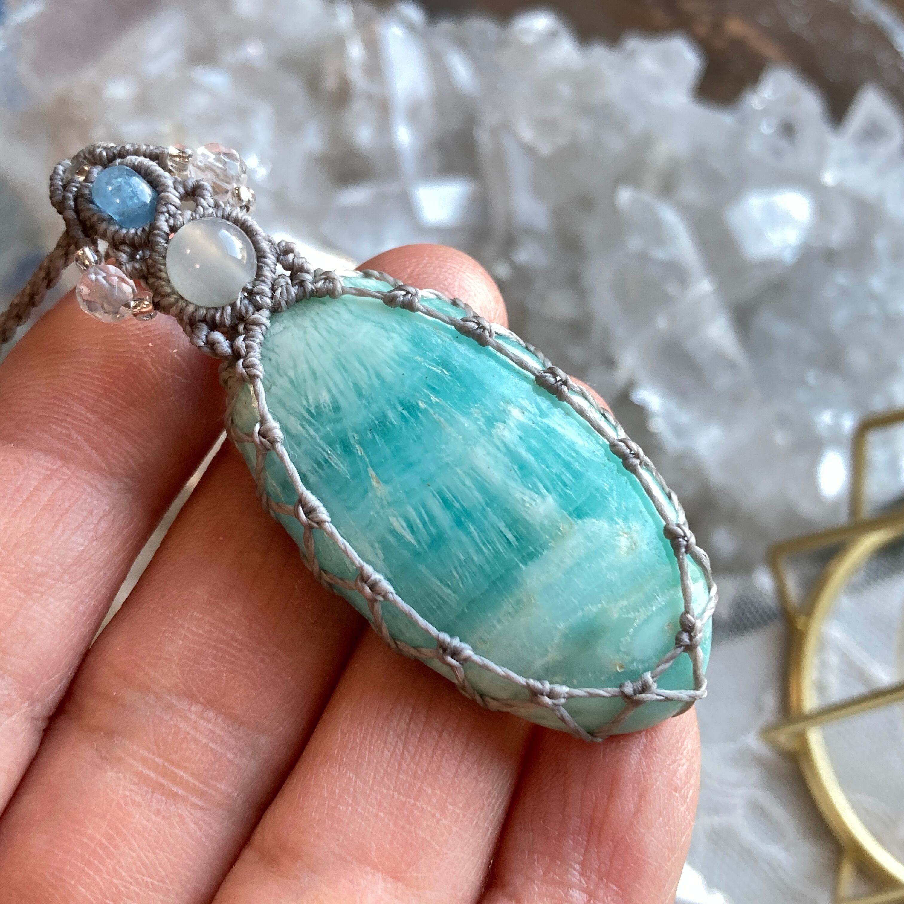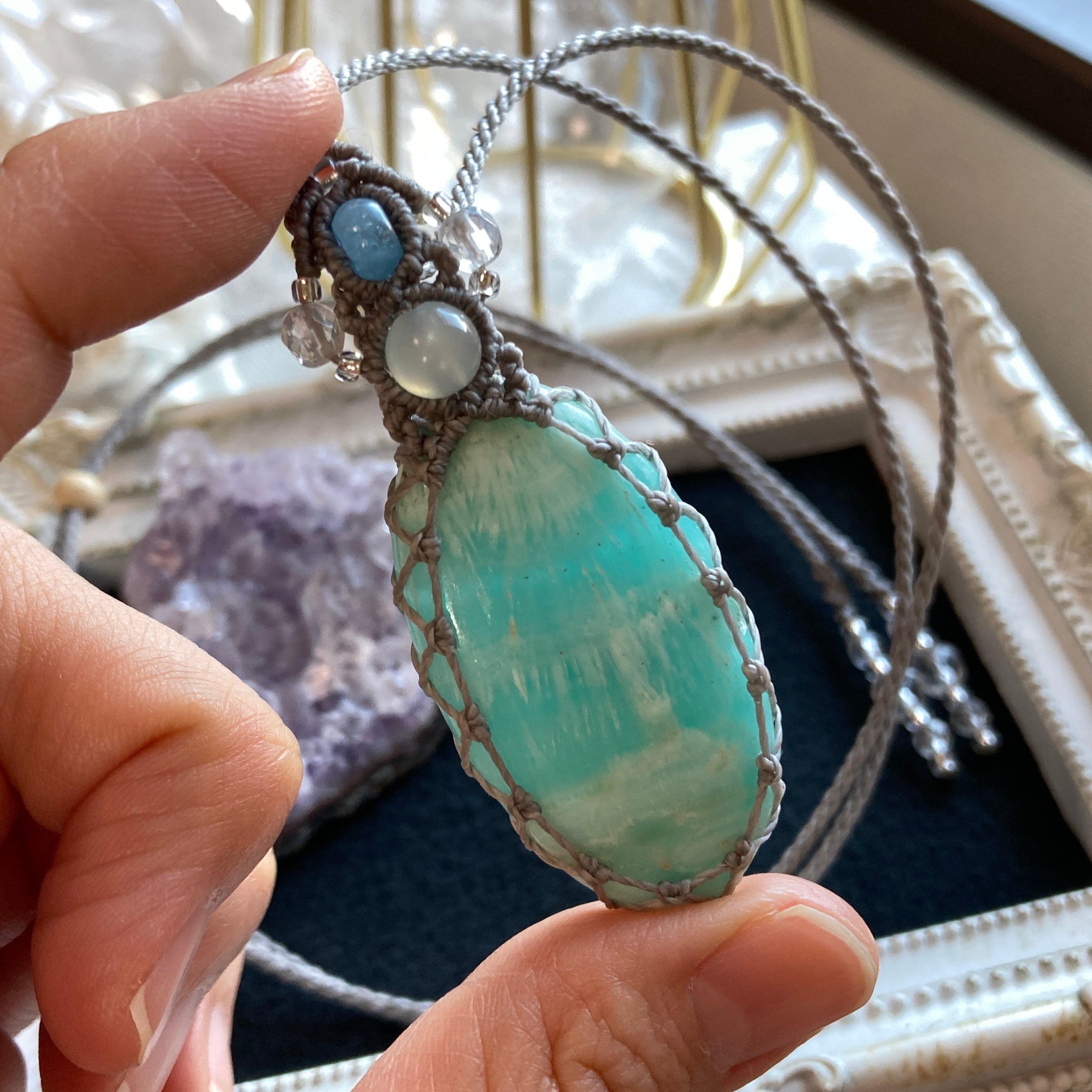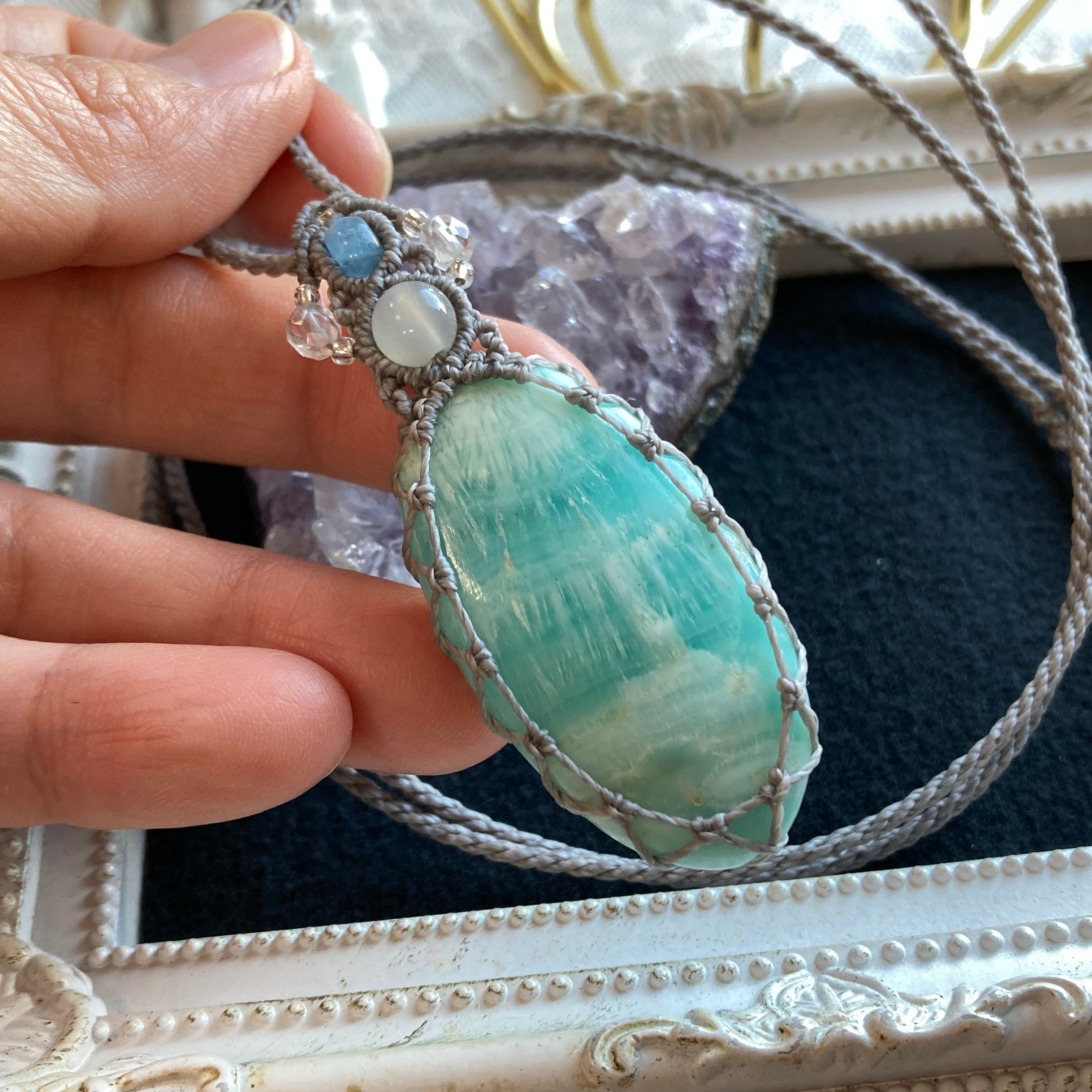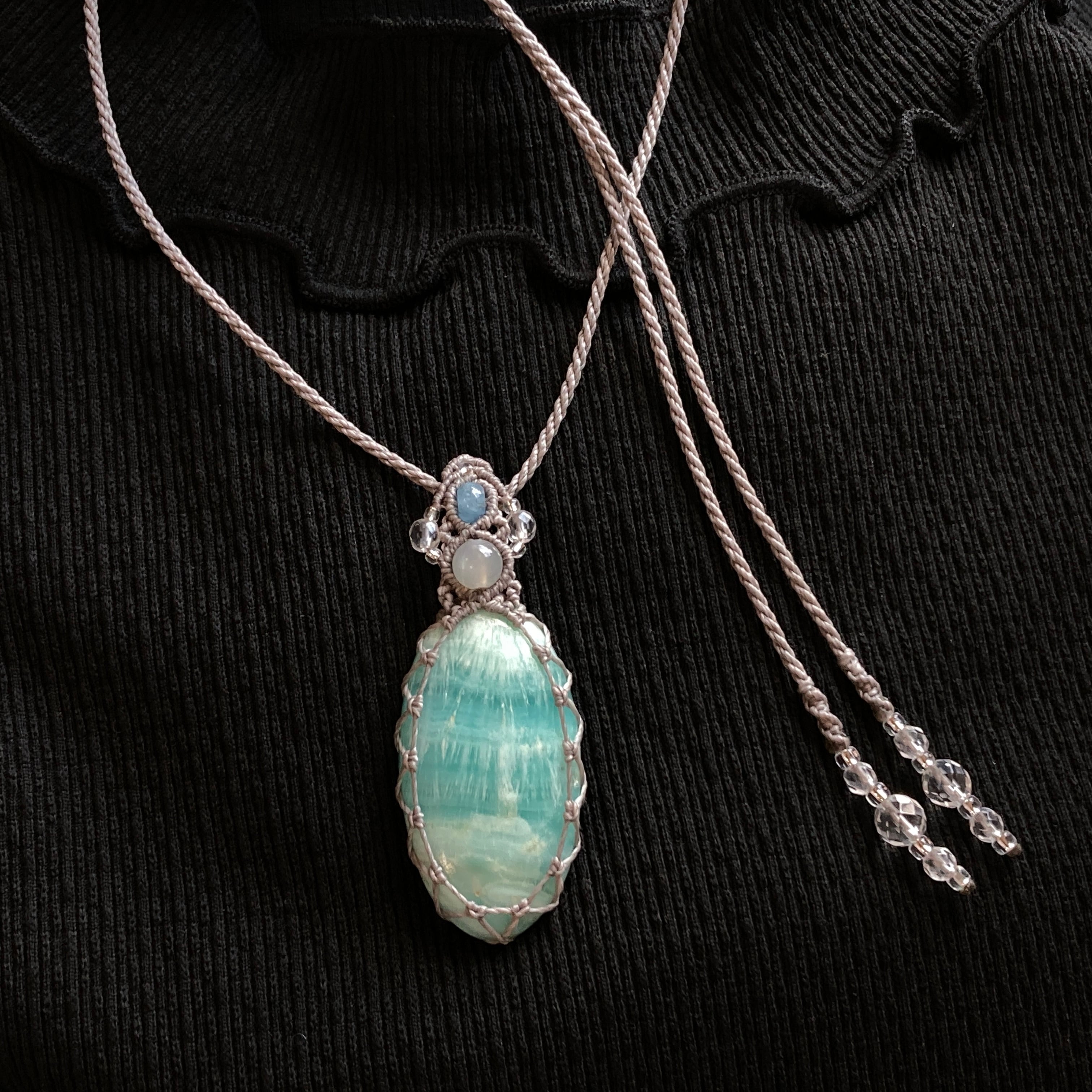ブルーアラゴナイト マクラメネックレス・マクラメ編みペンダントネックレス