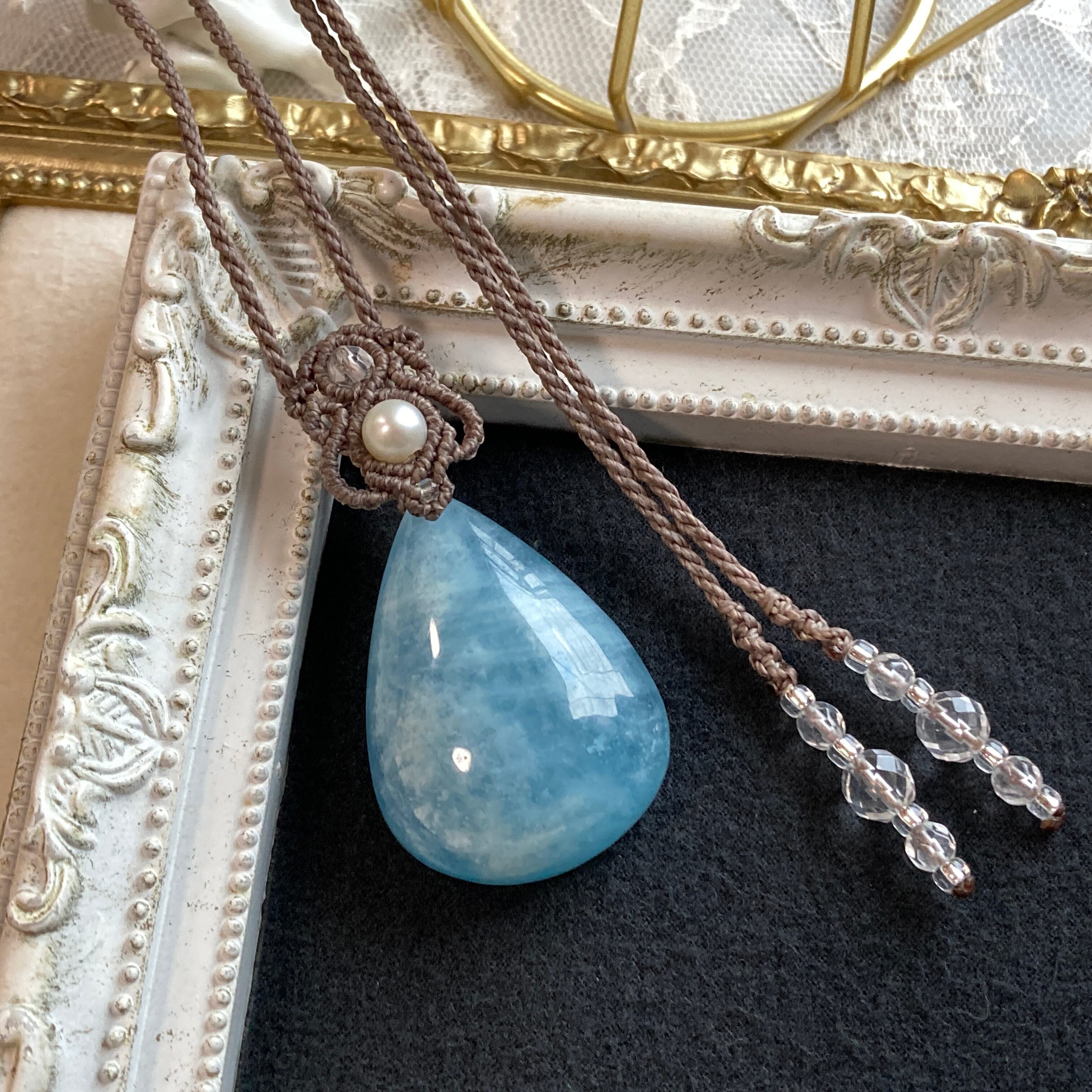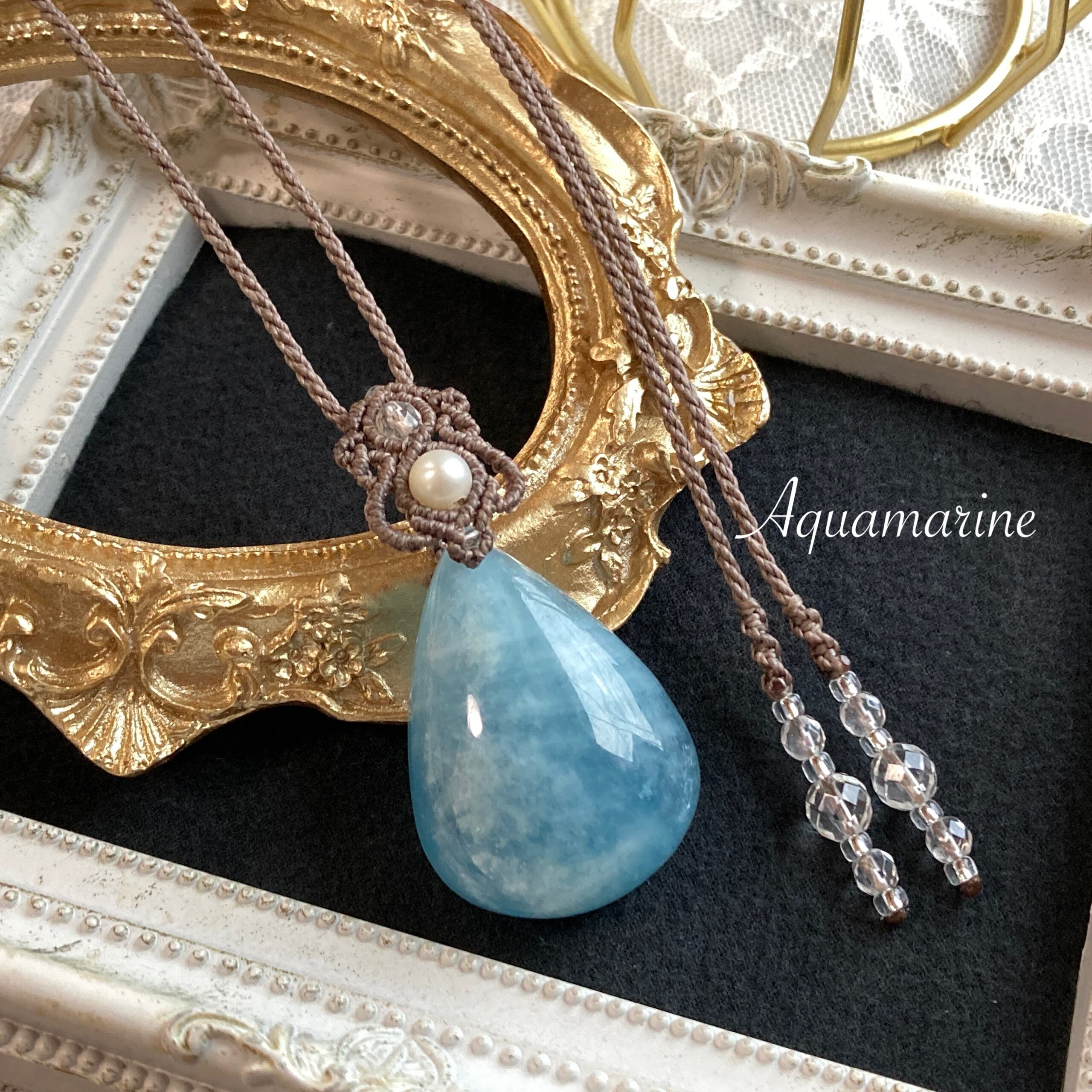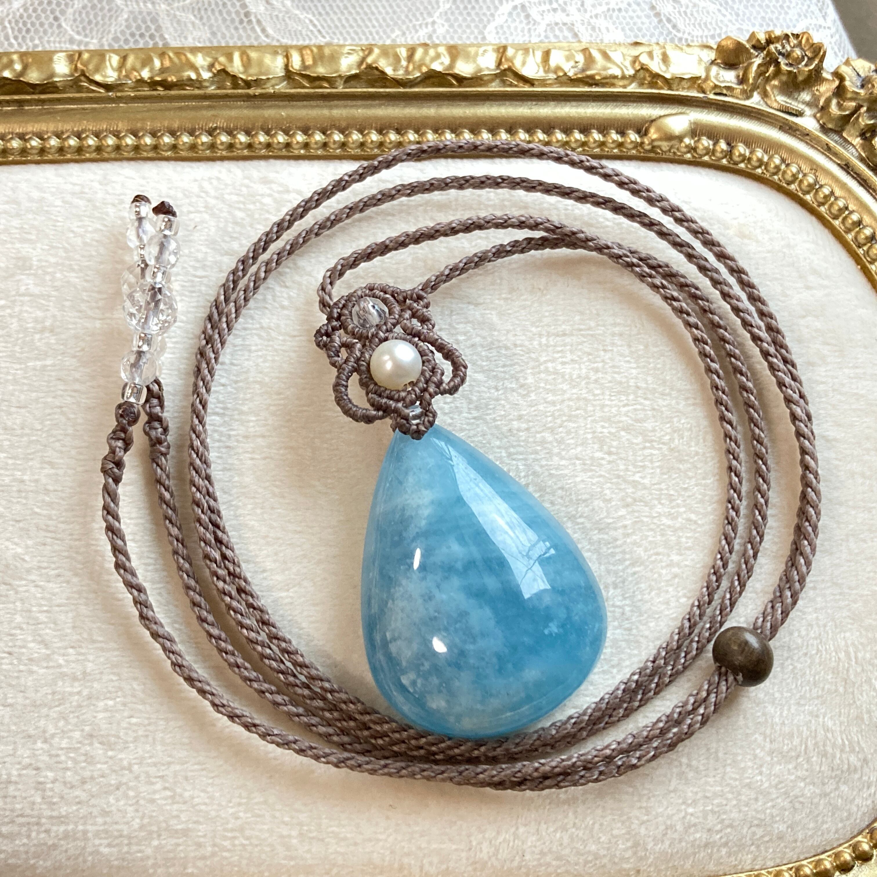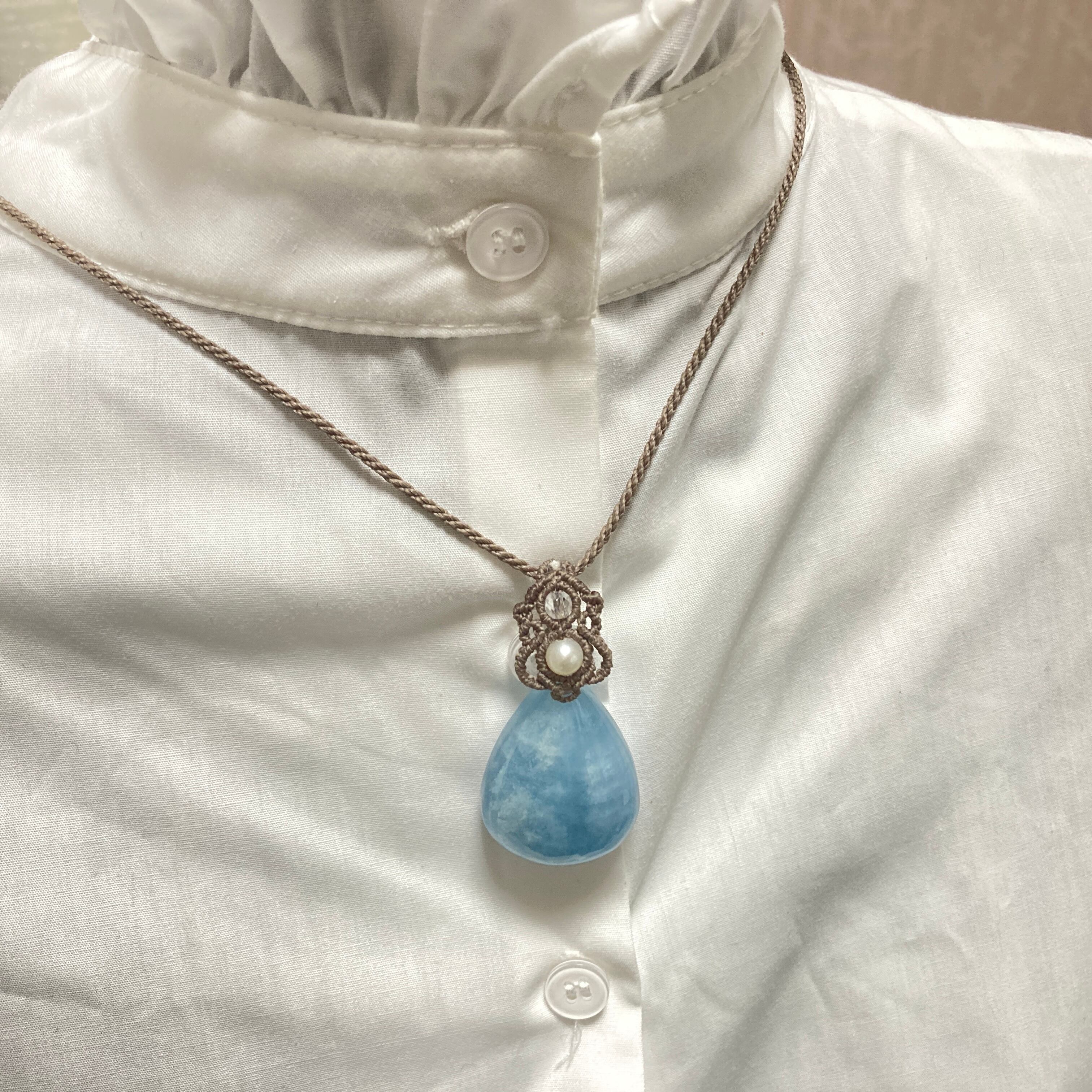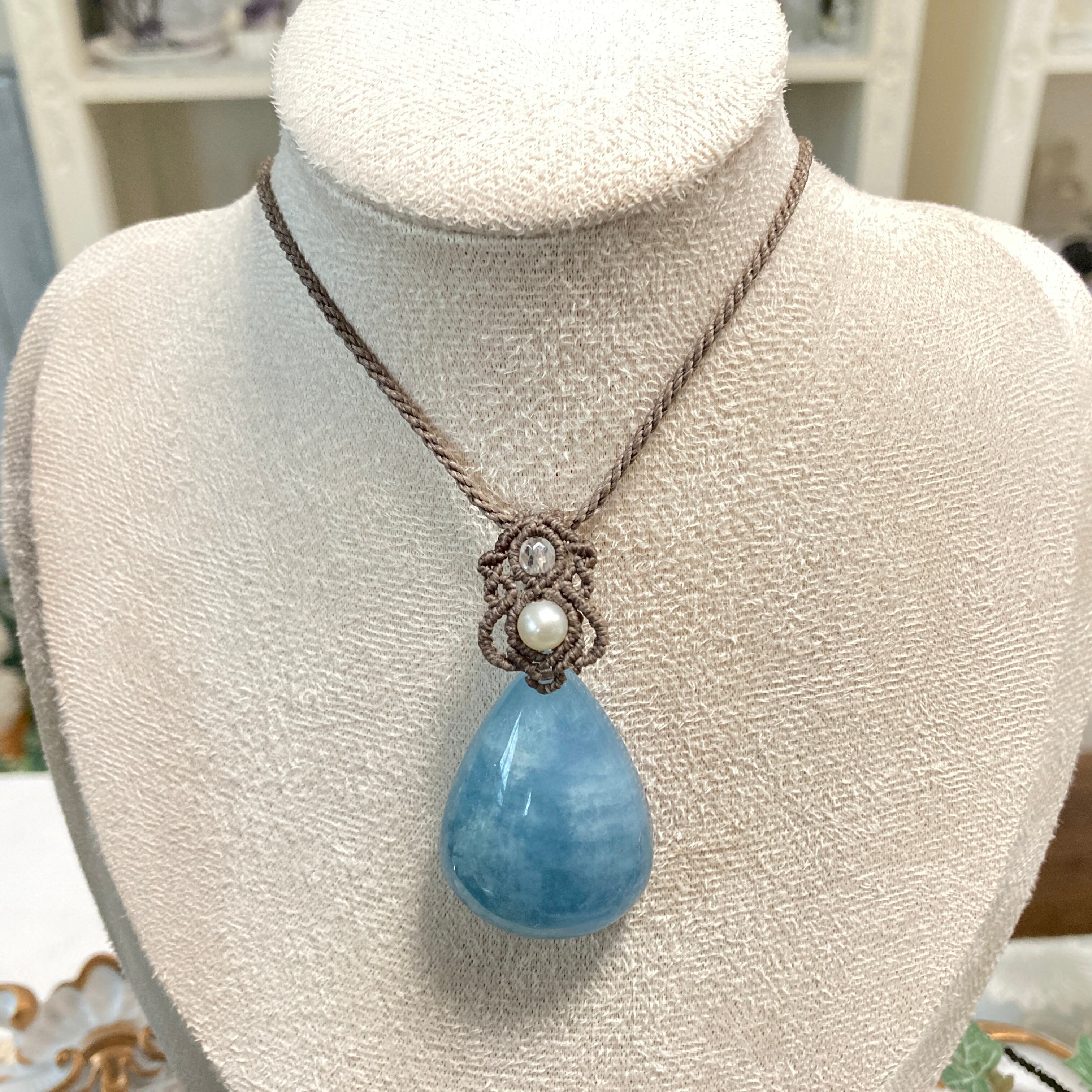 【アクアマリン マクラメネックレス】