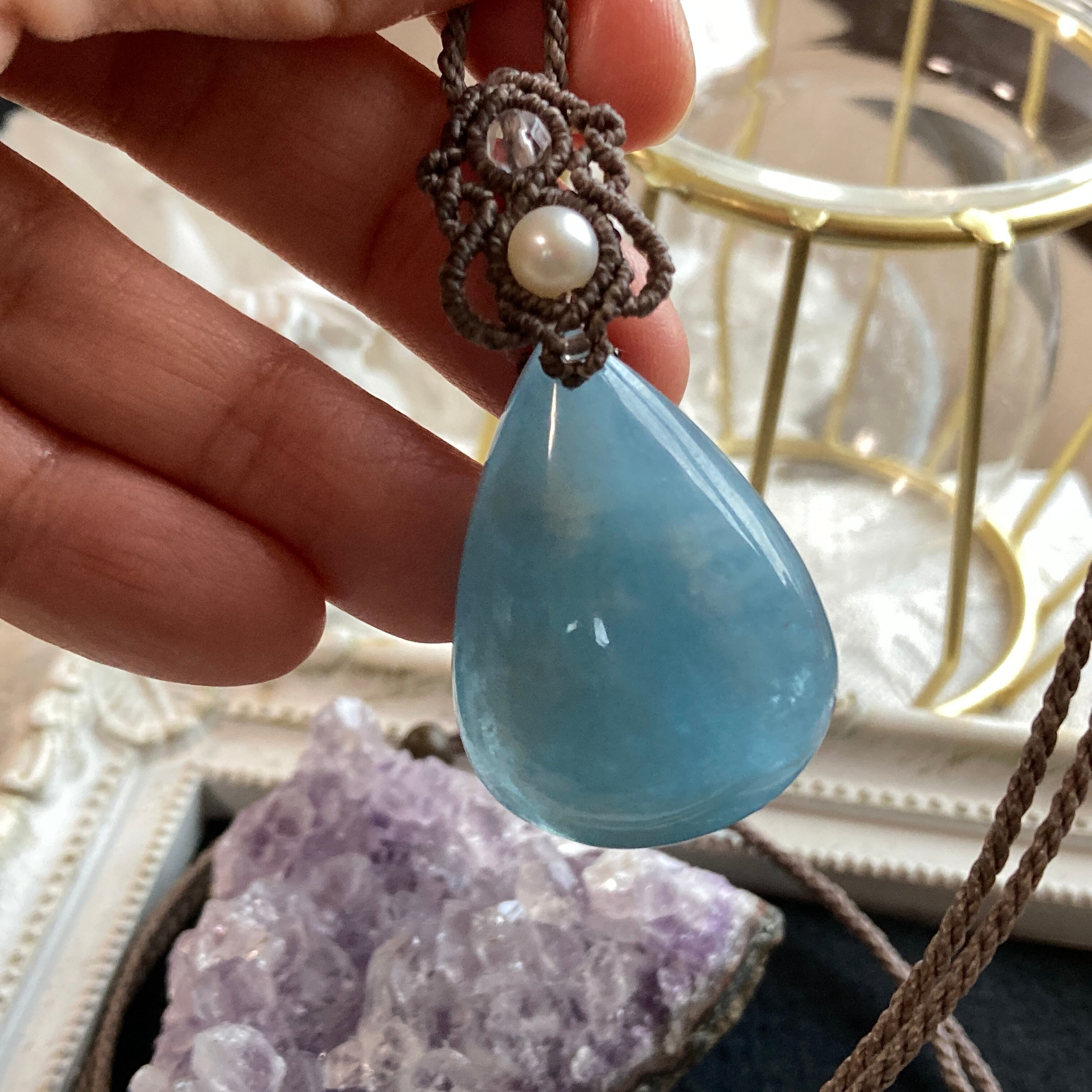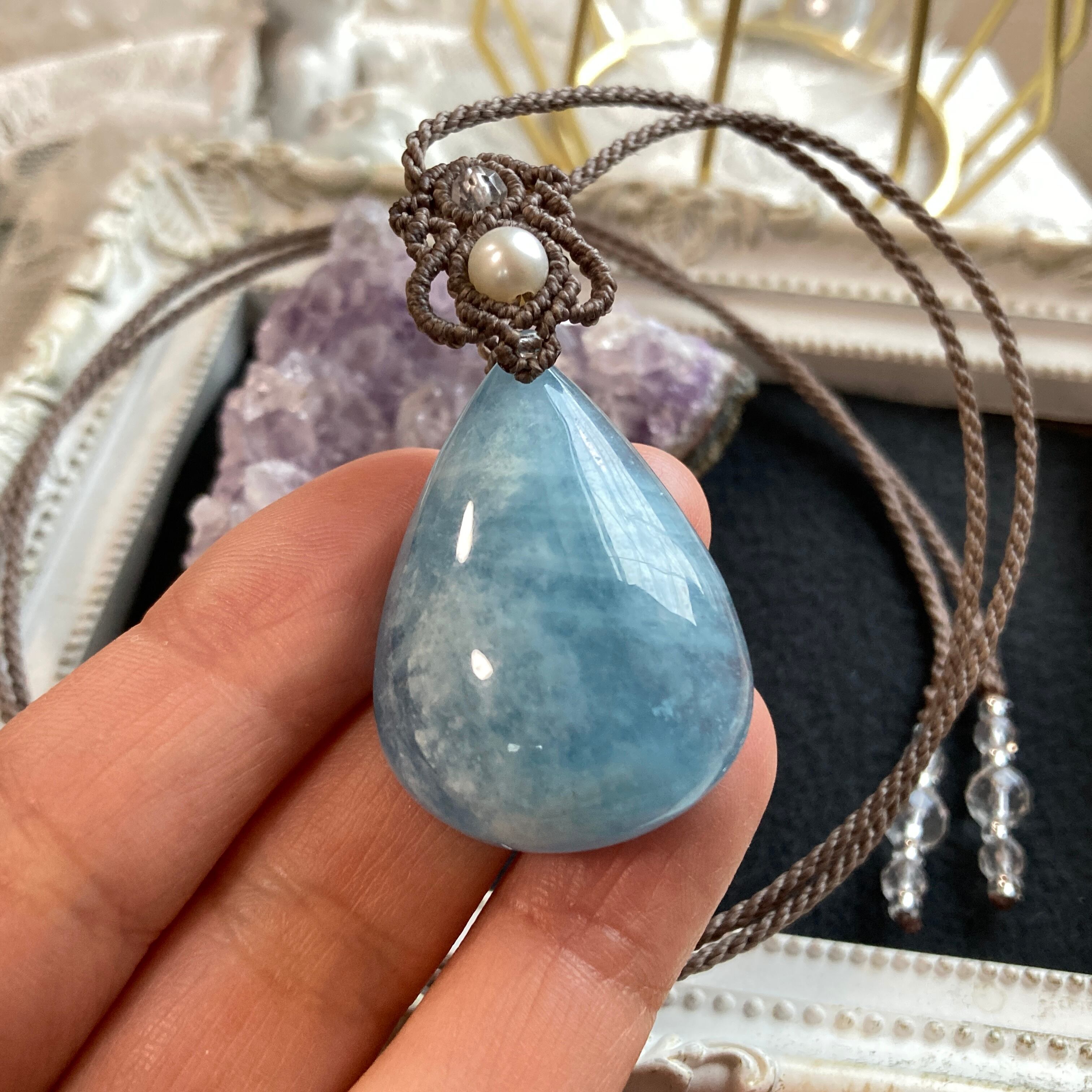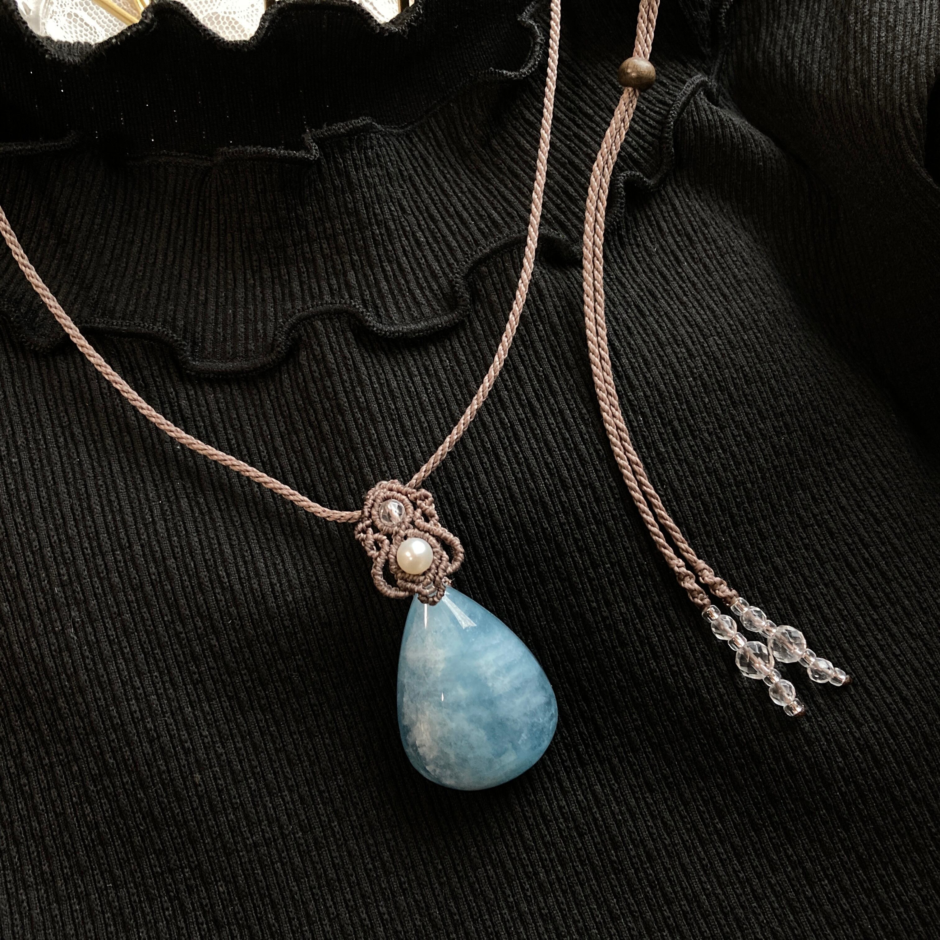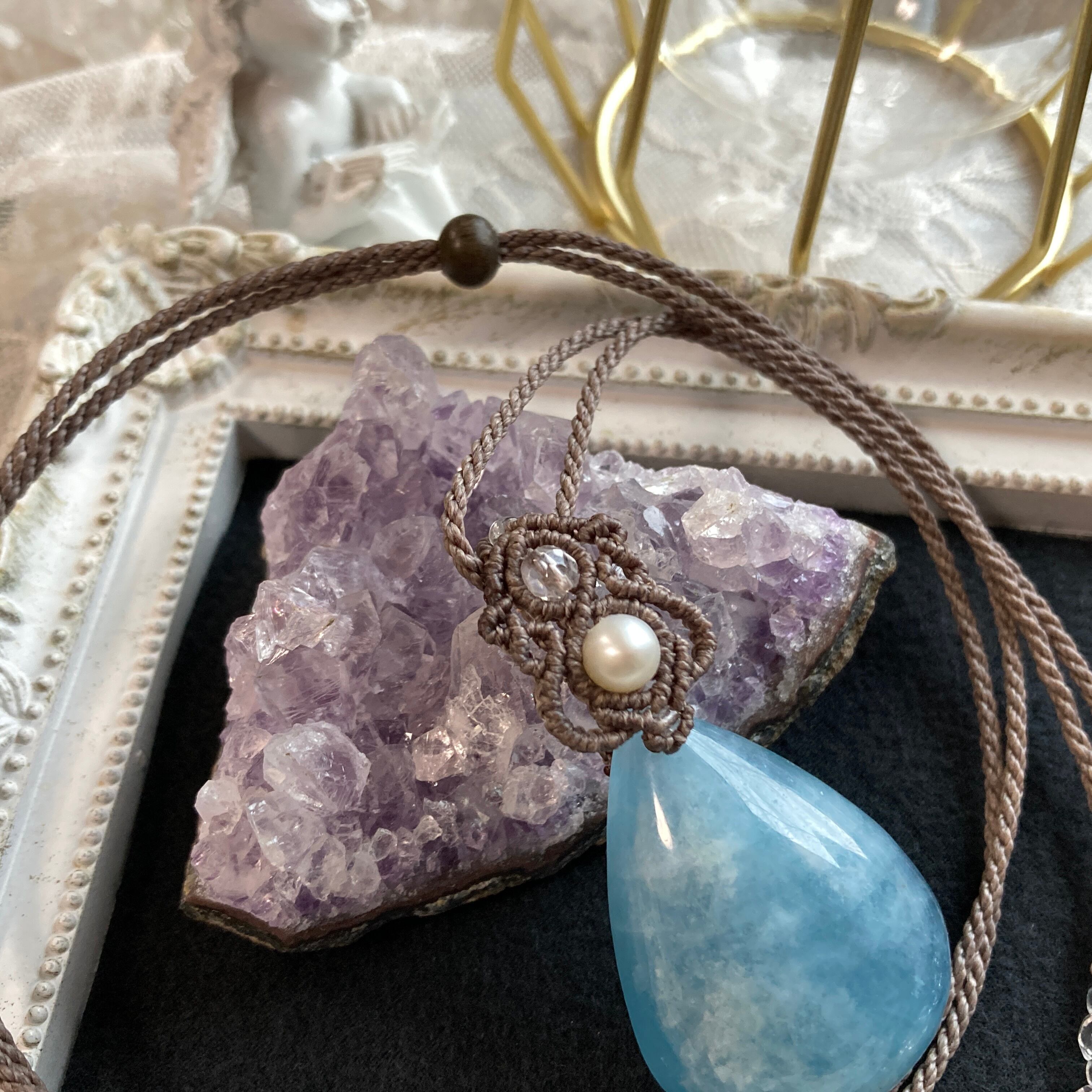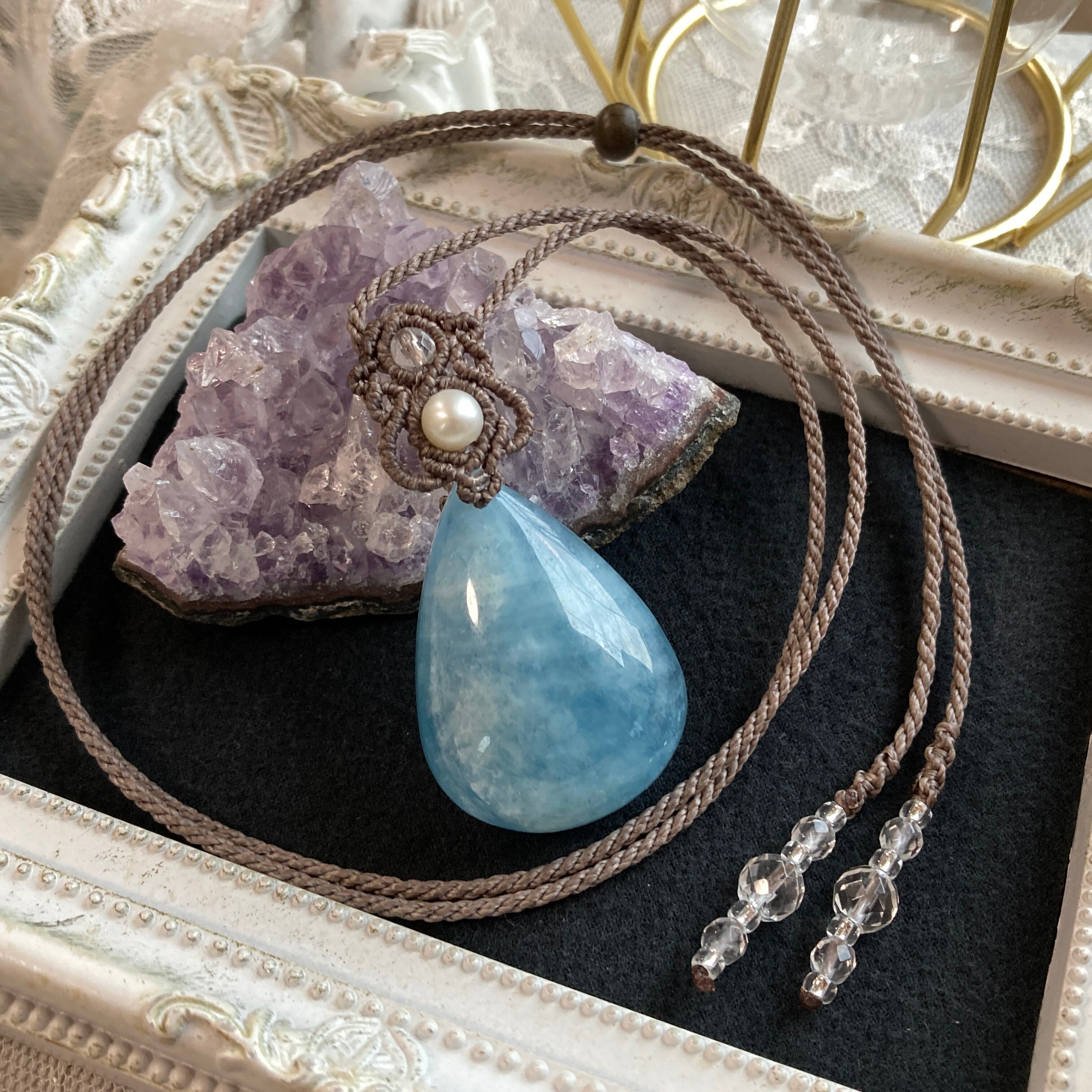 【アクアマリン マクラメネックレス】