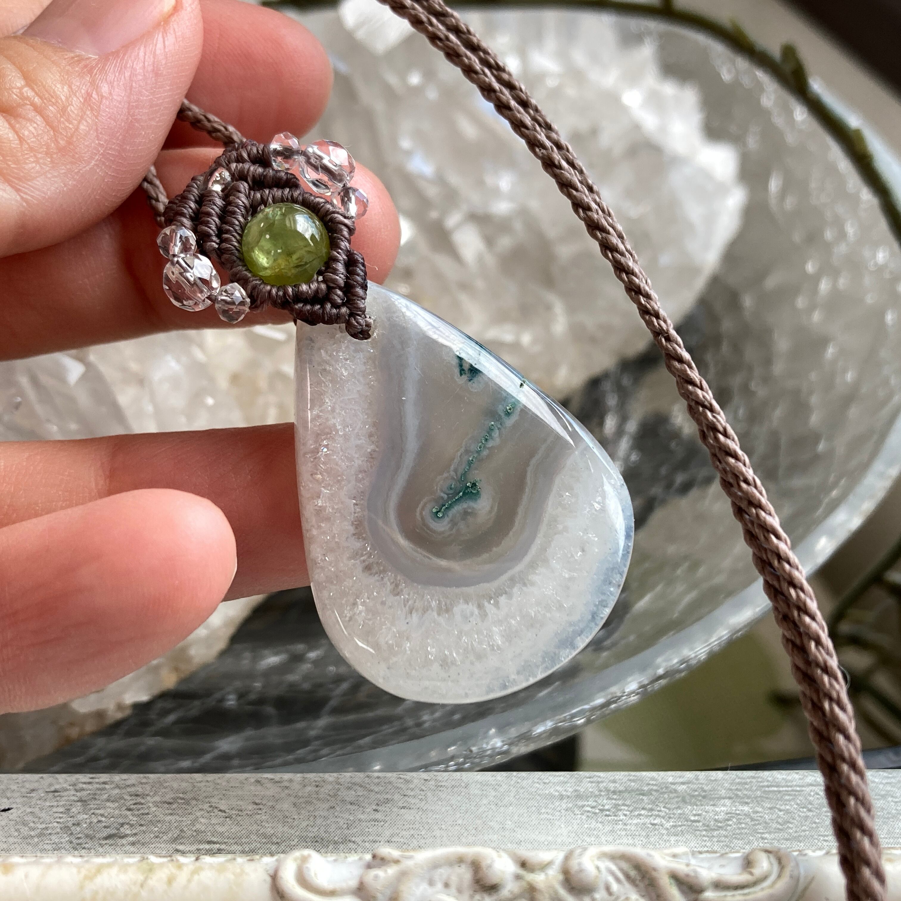 ソーラークォーツ ×モスアゲート 天然石 マクラメ編みネックレス・マクラメネックレス