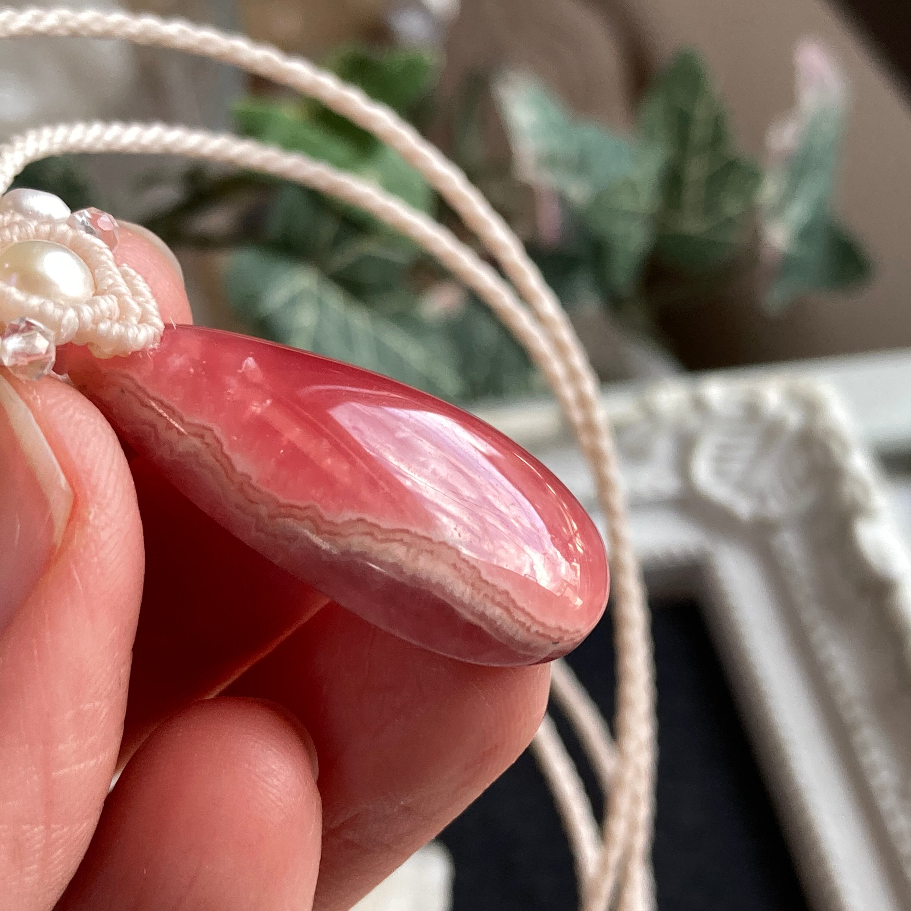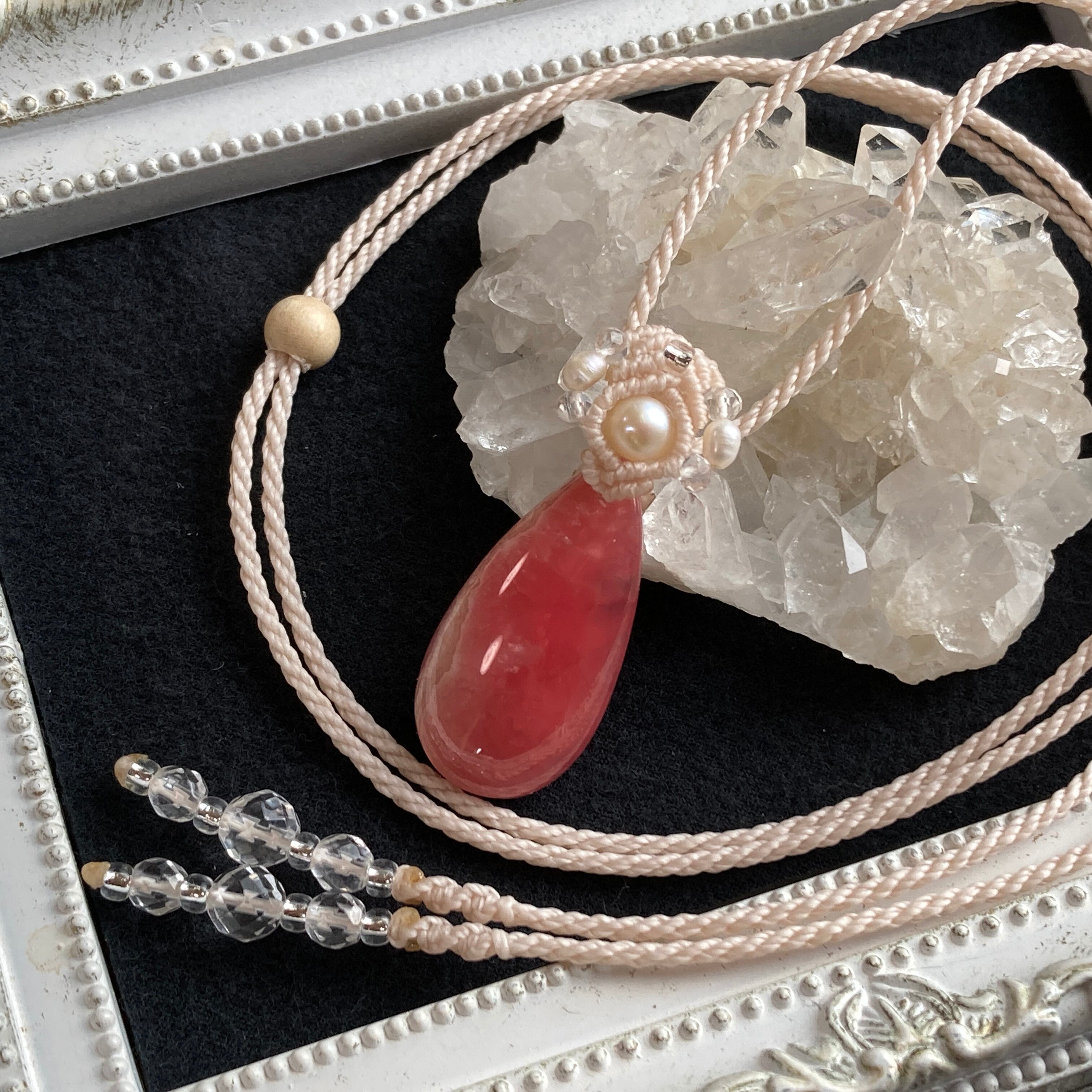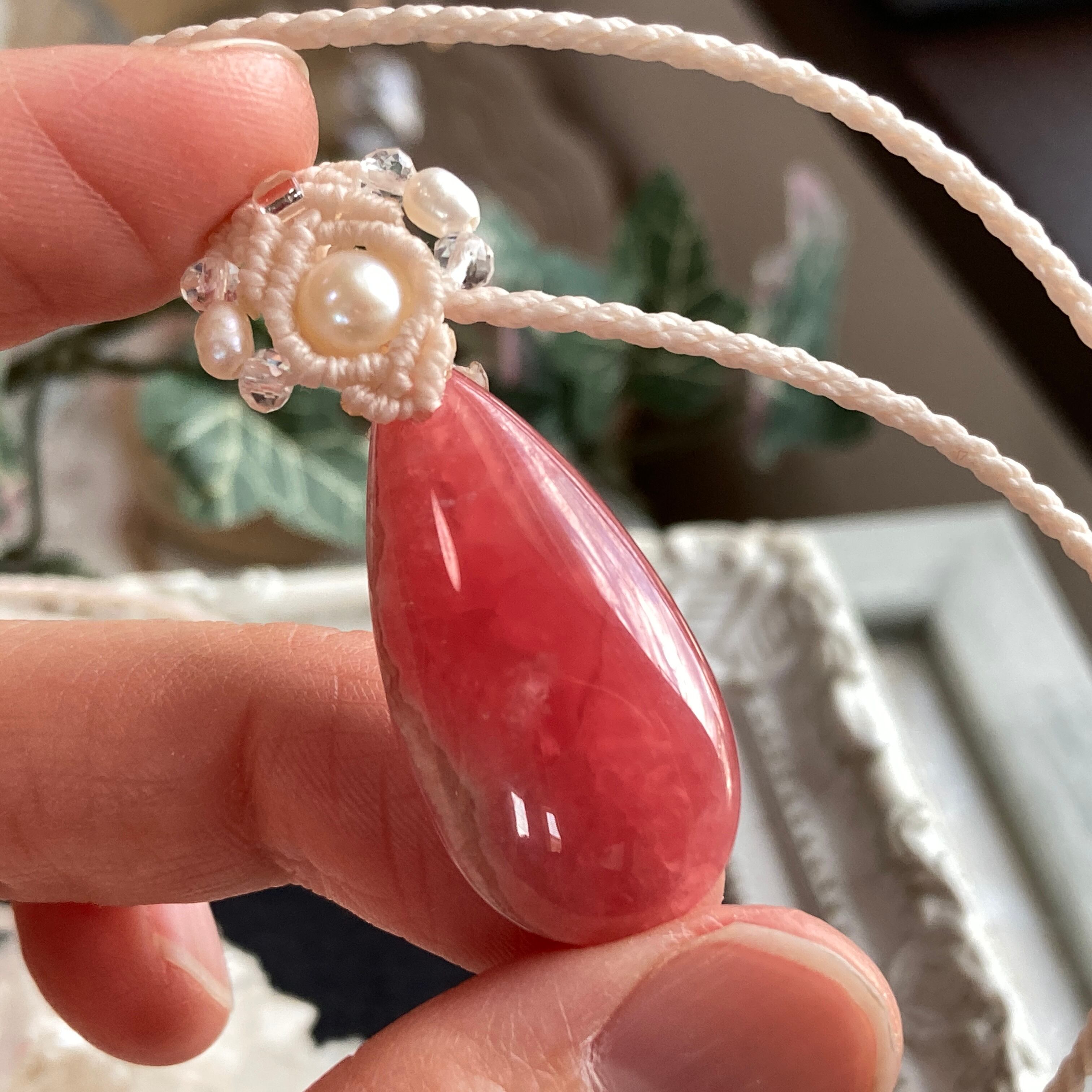 インカローズ(ロードクロサイト) ミニサイズ 天然石マクラメ編みネックレスA