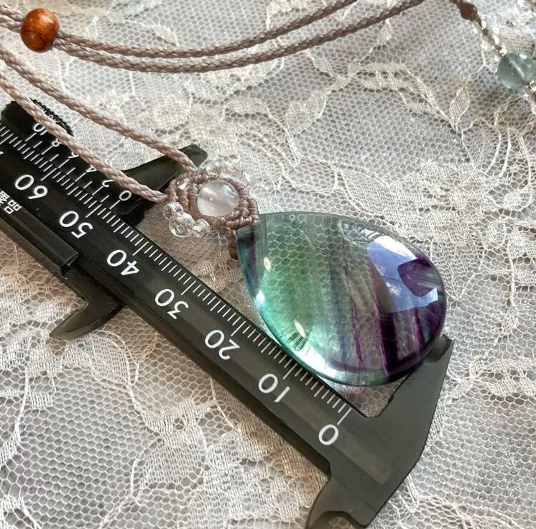 マルチカラーフローライト 天然石マクラメ編みネックレス・天然石マクラメネックレス